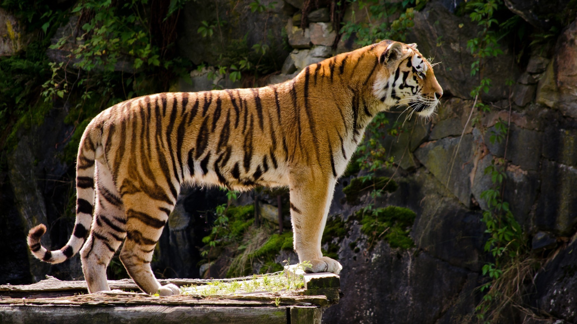 Fier tigre au pied des rochers