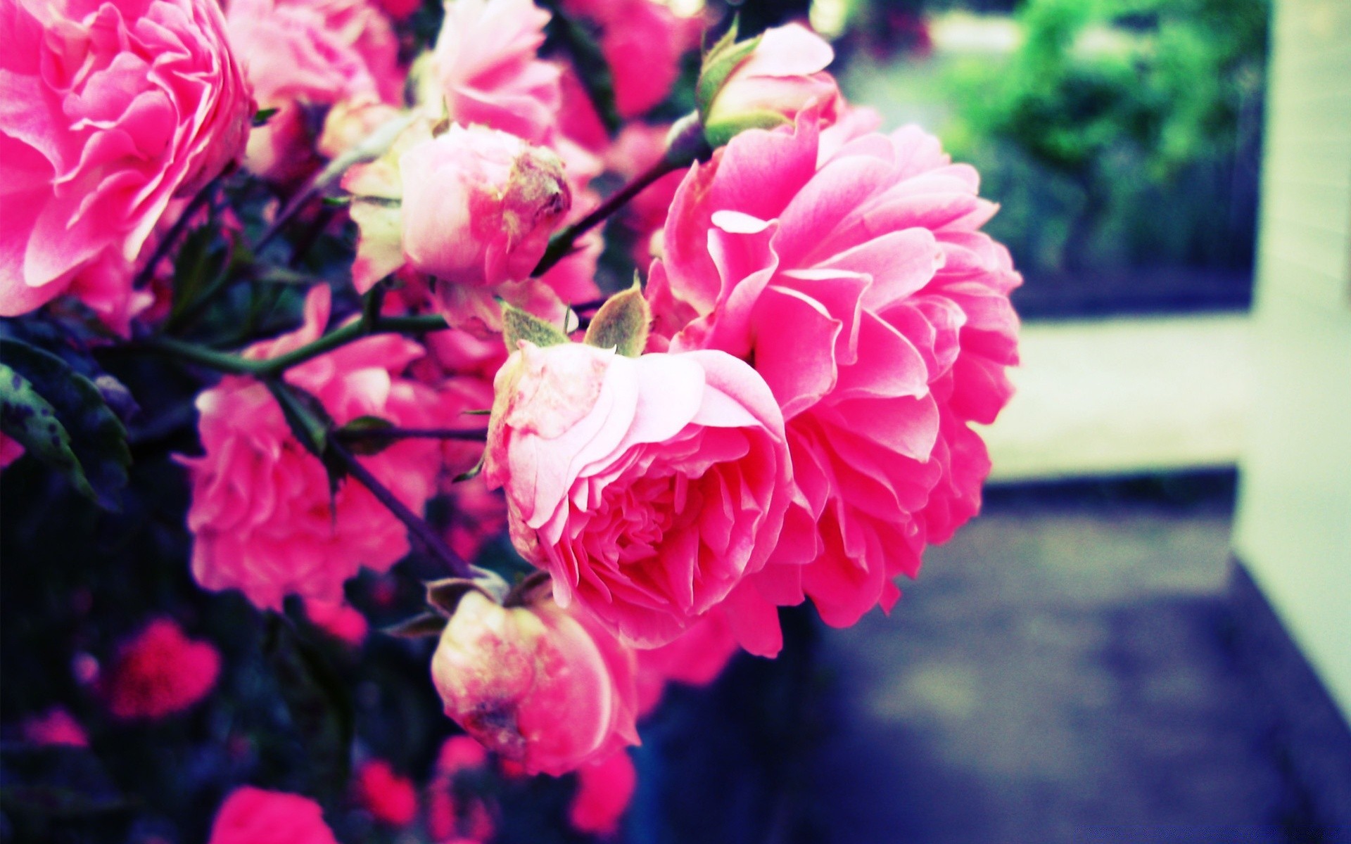 Grand bouquet de roses sur le rebord de la fenêtre