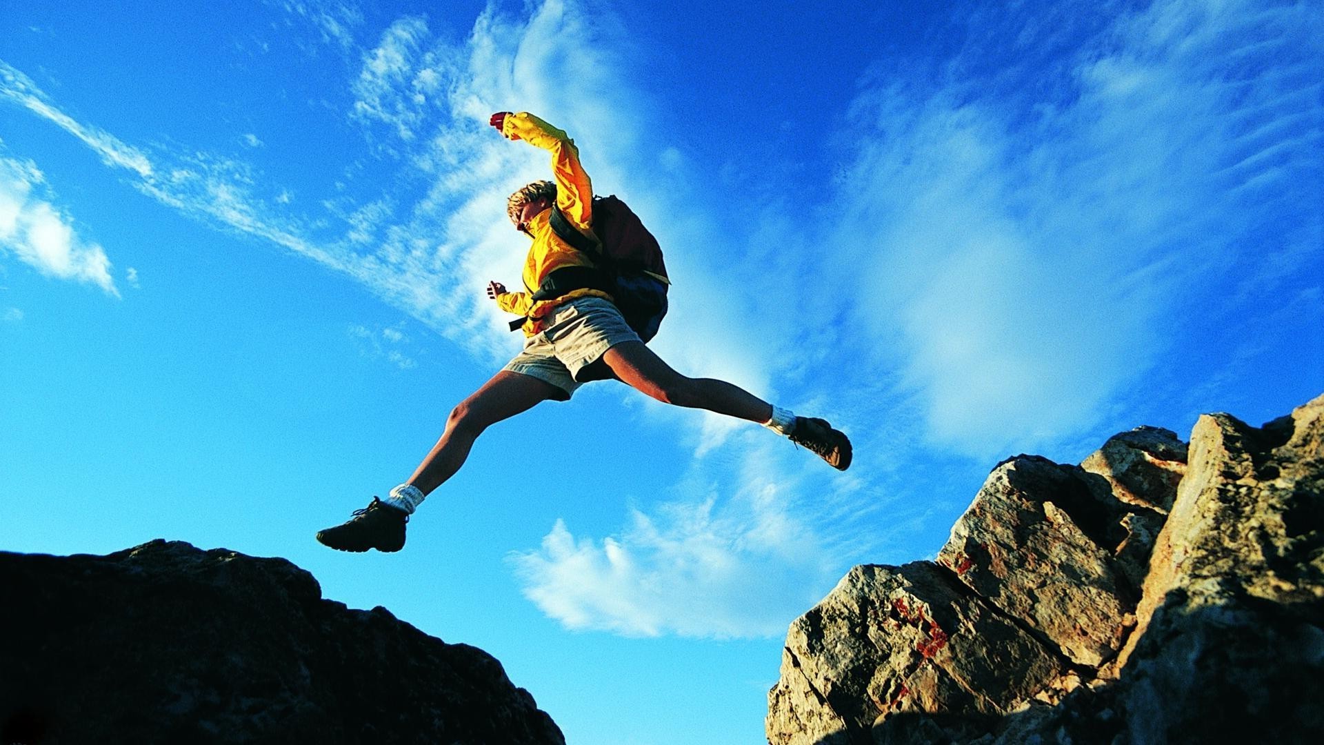 Alpiniste engagé dans l'escalade au coucher du soleil