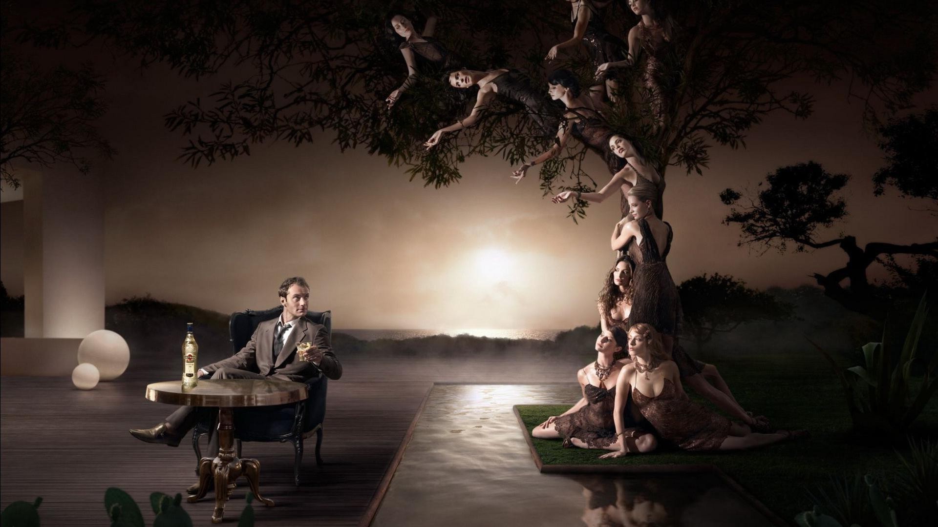 Les filles dans les arbres paissent devant un homme
