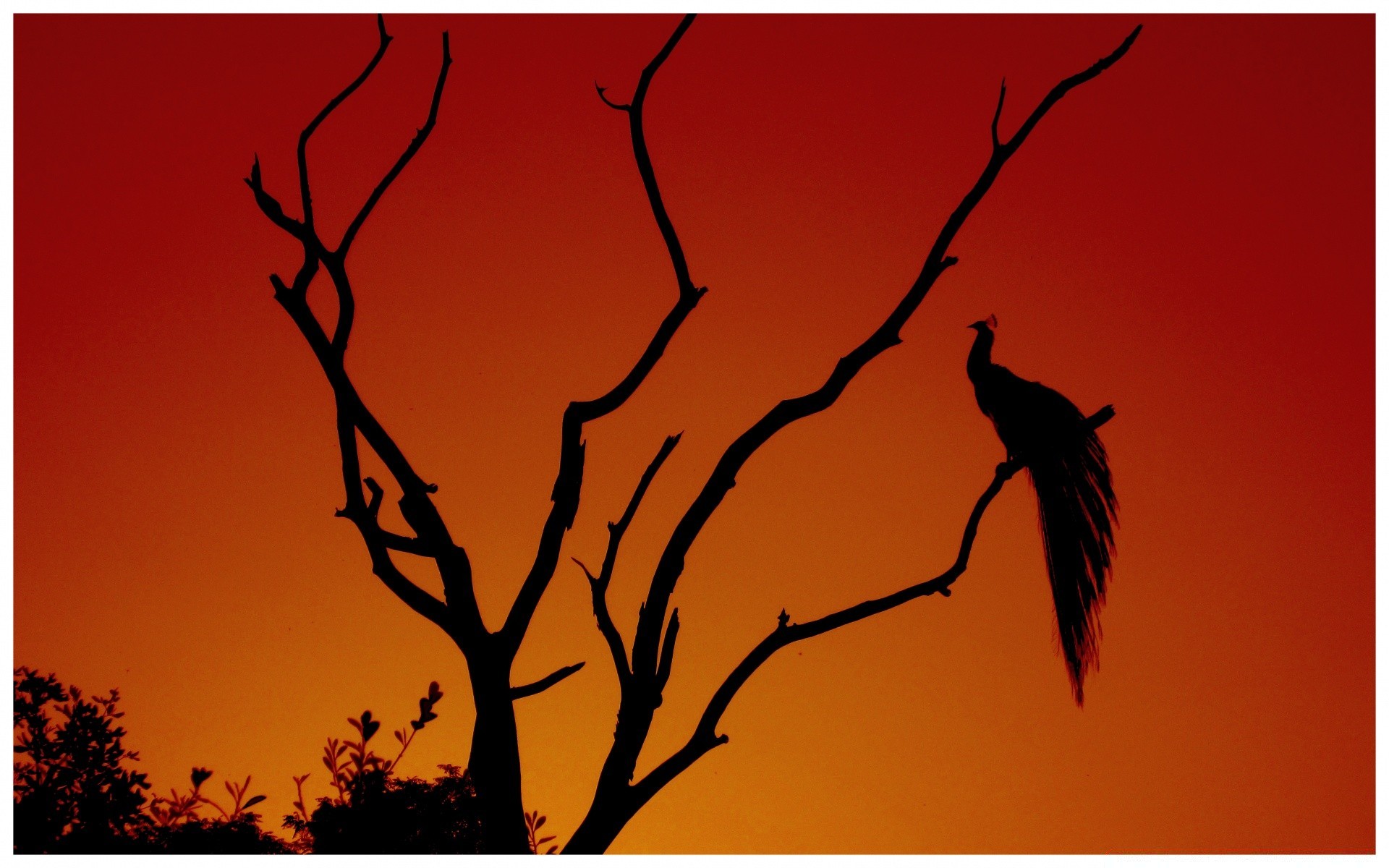 Silhouette d'arbre de paon coucher de soleil