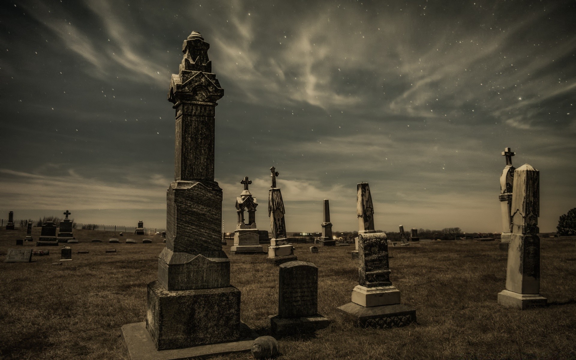 Cimetière au coucher du soleil dans des couleurs monochromes