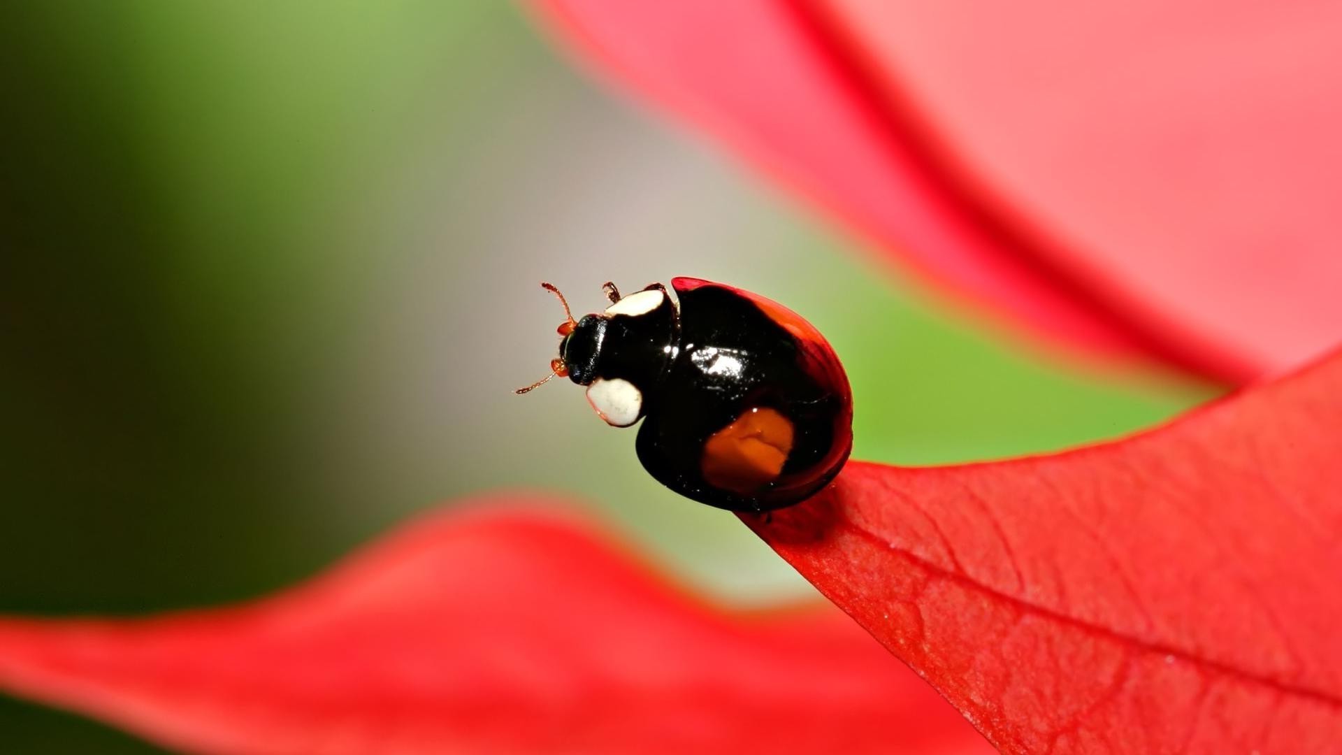Coccinelle sur une feuille rouge