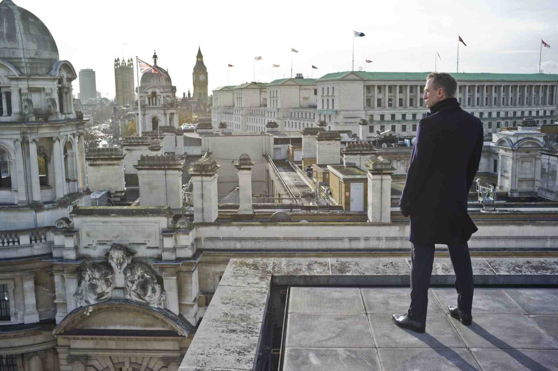 Homme sur fond de ville grise