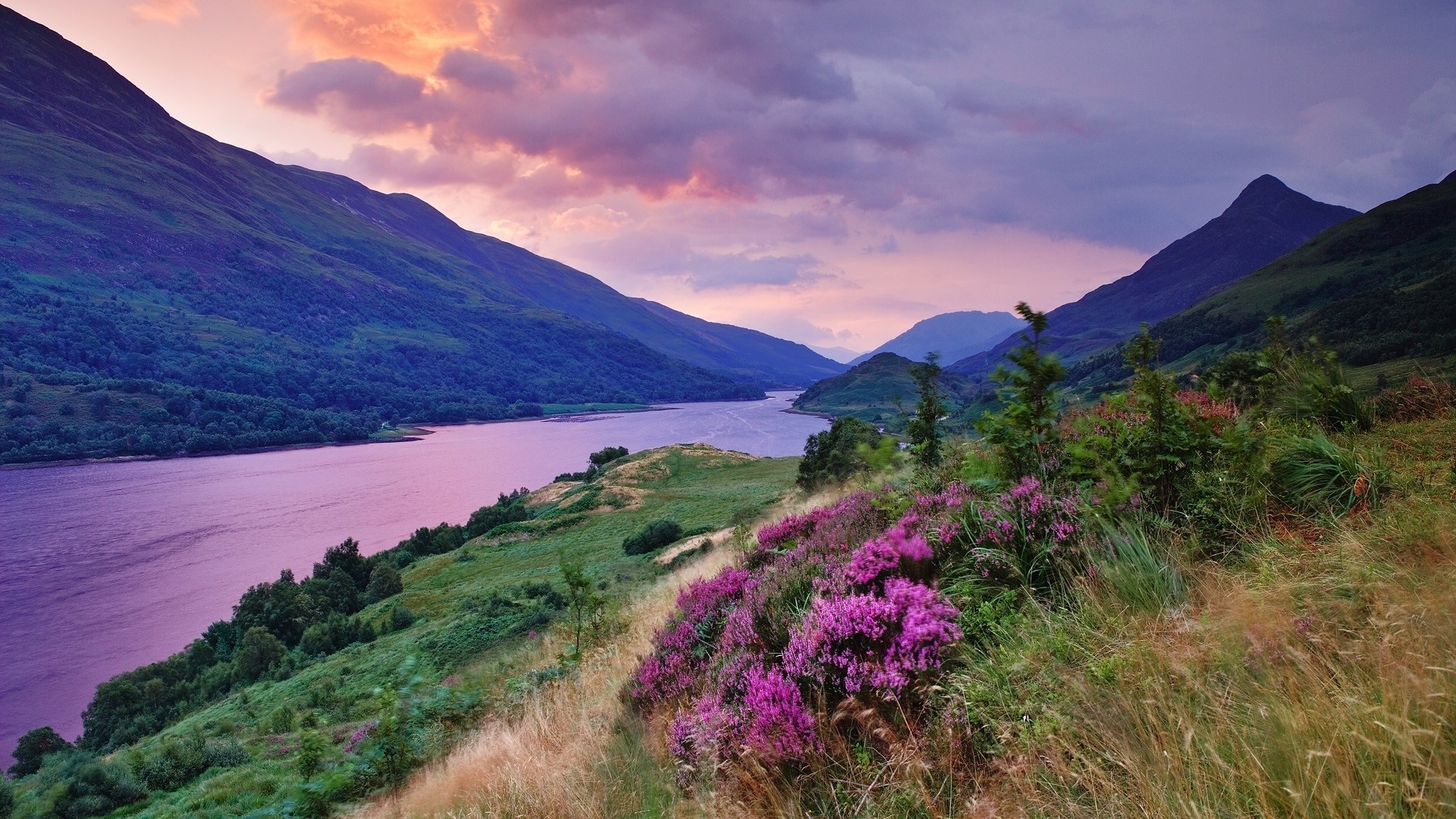 Rivière rose, beau coucher de soleil