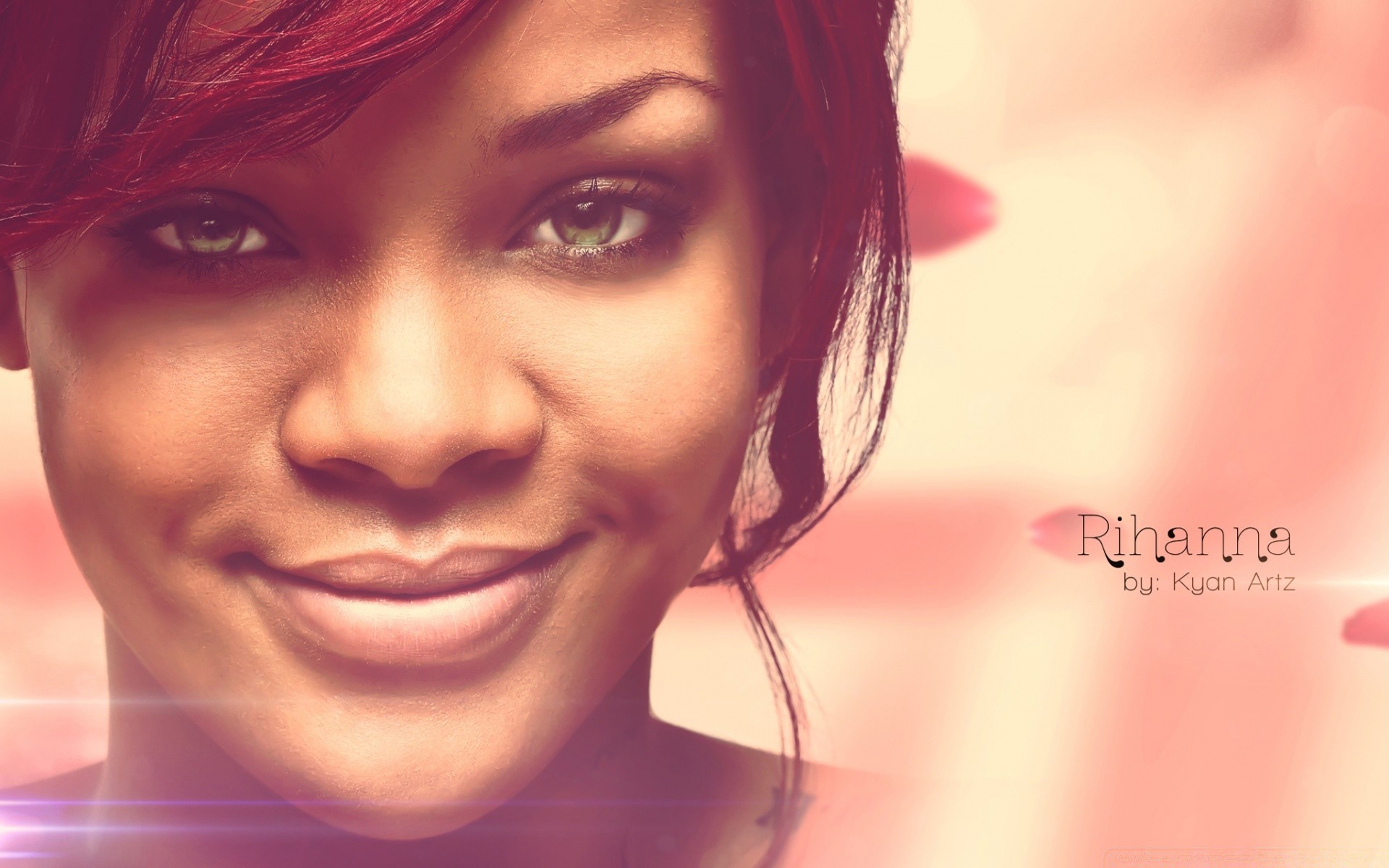 Sur fond rose, le visage de la jeune fille et le nom est écrit en anglais