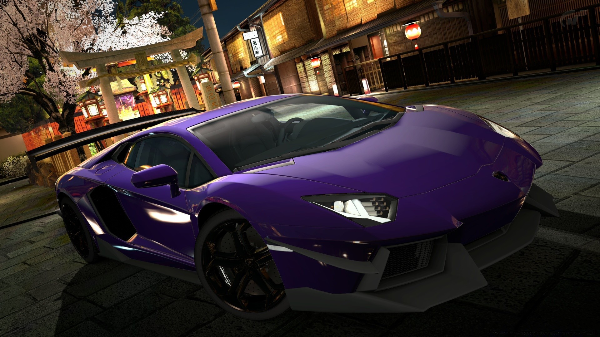 Voiture pourpre, Sakura, pagode et lanternes chinoises