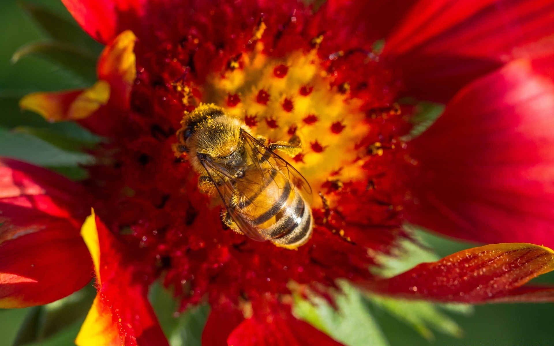 Une abeille qui travaille dur recueille du miel sur une fleur