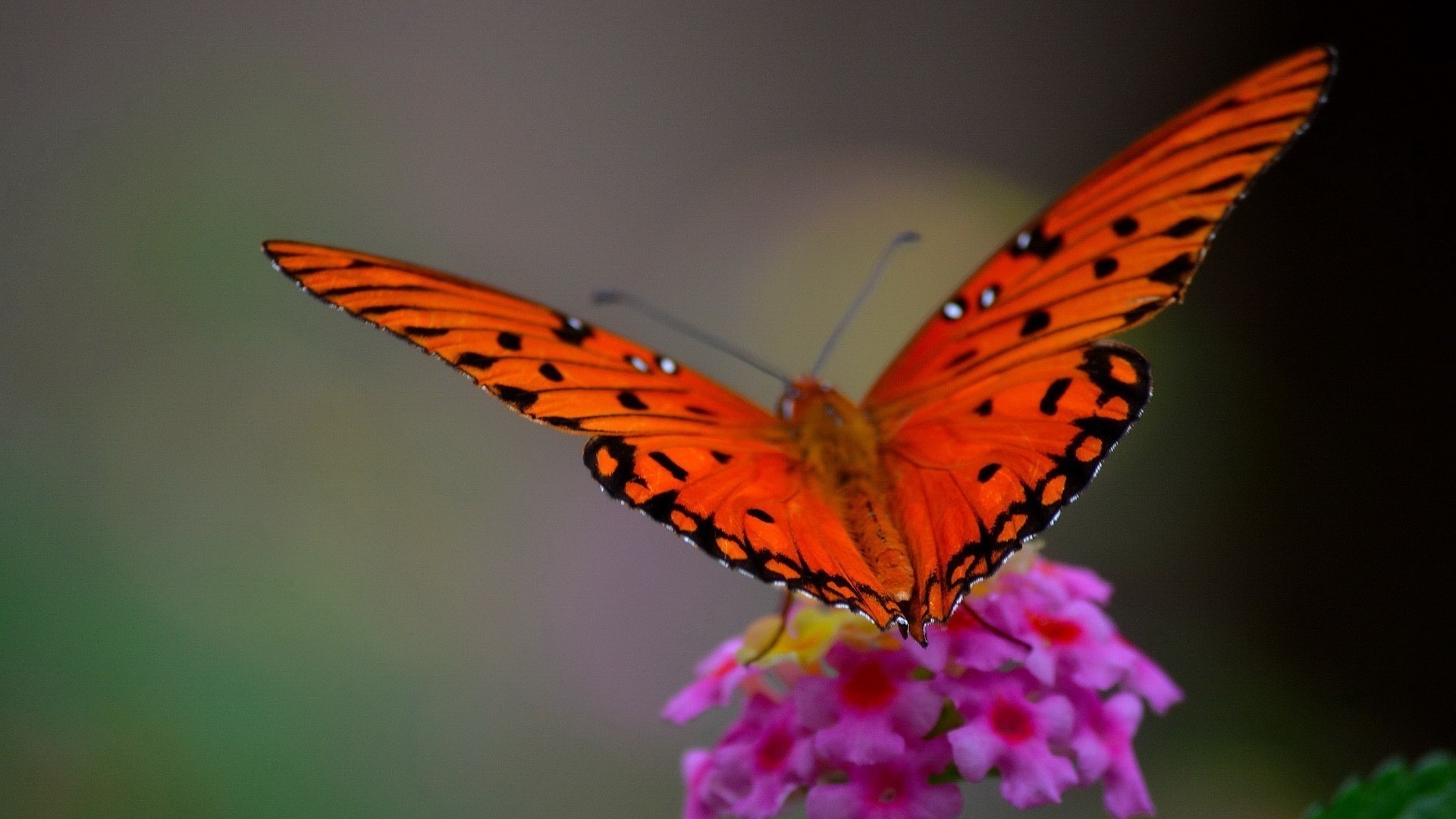 Papillon sur la fleur. Fleurs rouges. Fond sombre