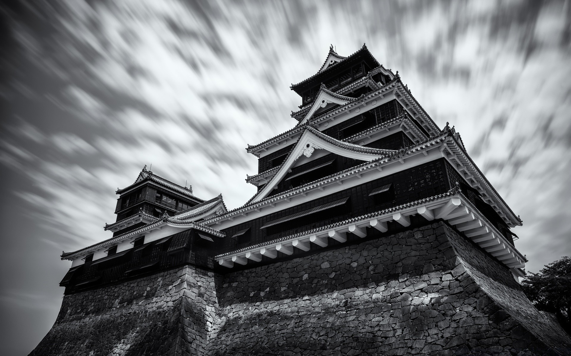 Parc noir et blanc dans le brouillard et beaucoup d'arbres