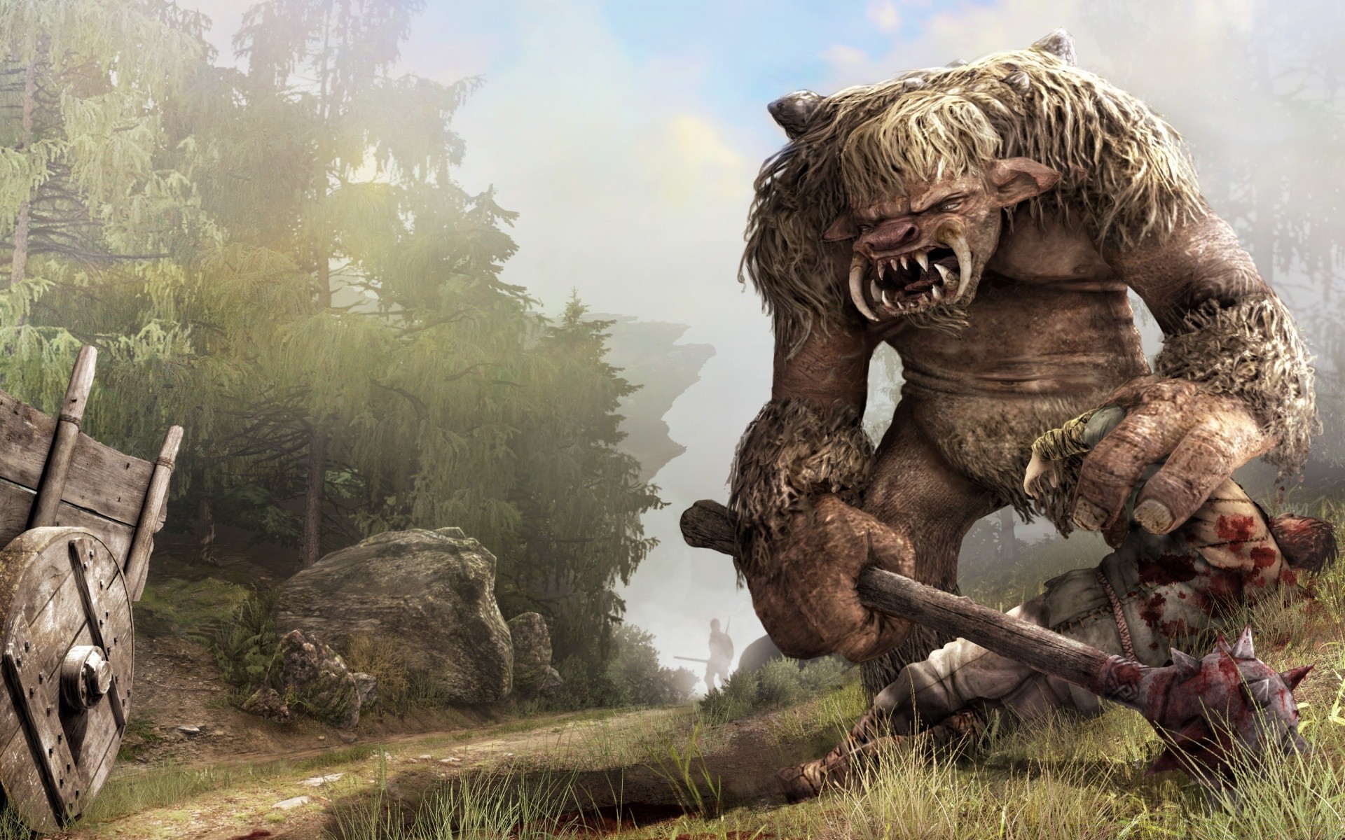Image d'un jeu d'ordinateur représentant un géant avec un marteau