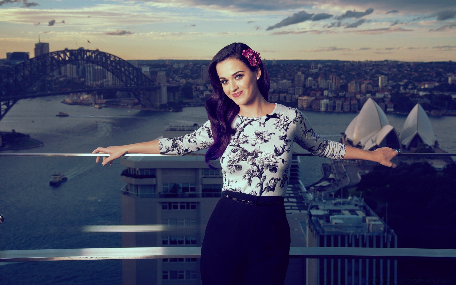 Jeune fille debout sur la zone ouverte du gratte-cielJeune fille debout sur la zone ouverte du gratte-ciel