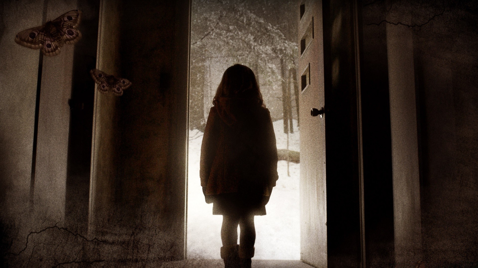 Figure solitaire de la jeune fille sur fond de porte ouverte