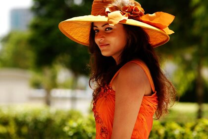 Portrait d'une jeune fille aux cheveux longs et à la tête couverte d'une écharpePortrait d'une jeune fille aux cheveux longs et à la tête couverte d'une écharpe
