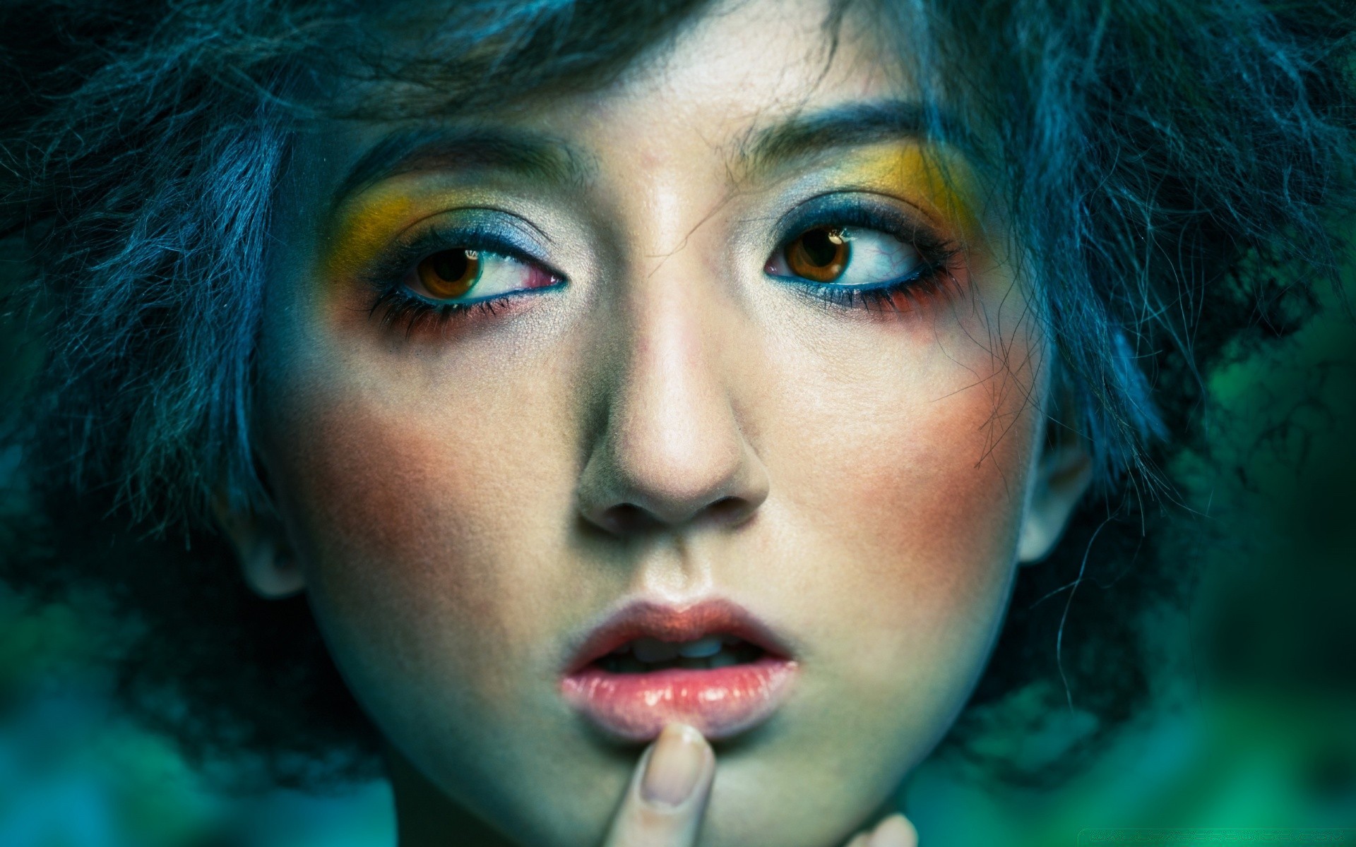 Portrait d'une jeune fille aux cheveux bleus