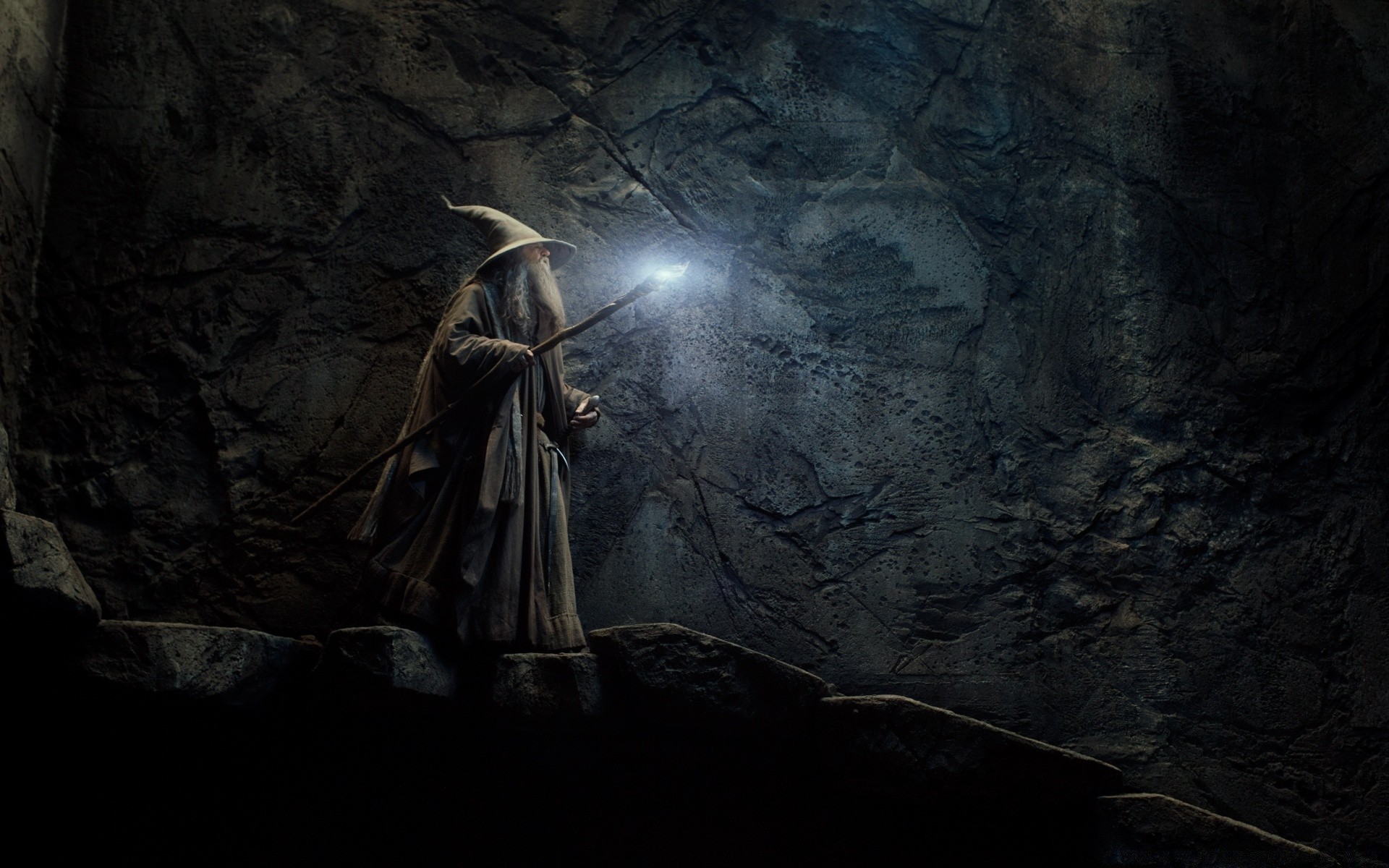 Mage dans la grotte avec une torche lumineuse