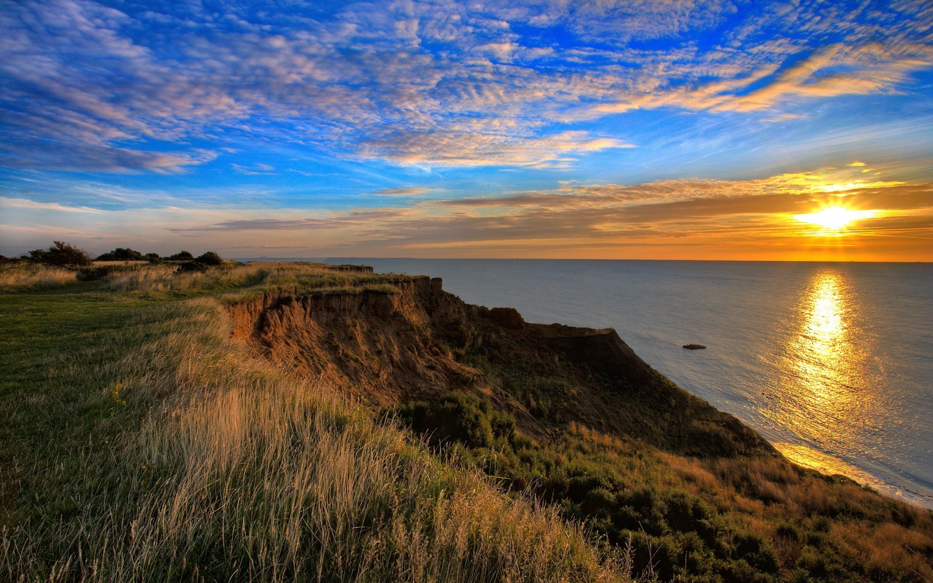 Beau coucher de soleil sur la côte rocheuse de la merBeau coucher de soleil sur la côte rocheuse de la mer