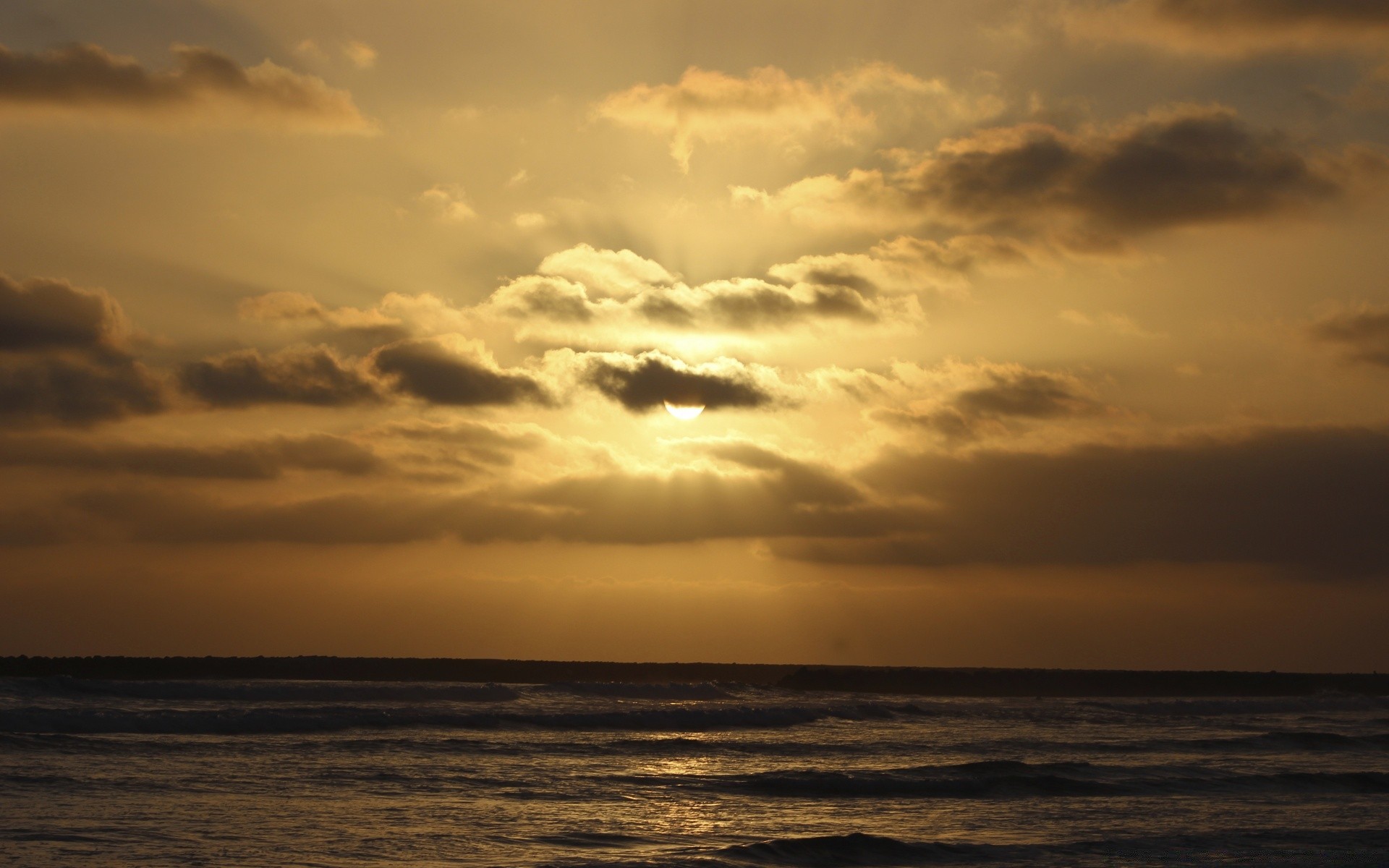 Le calme de la mer et le soleil caché derrière les nuagesLe calme de la mer et le soleil caché derrière les nuages