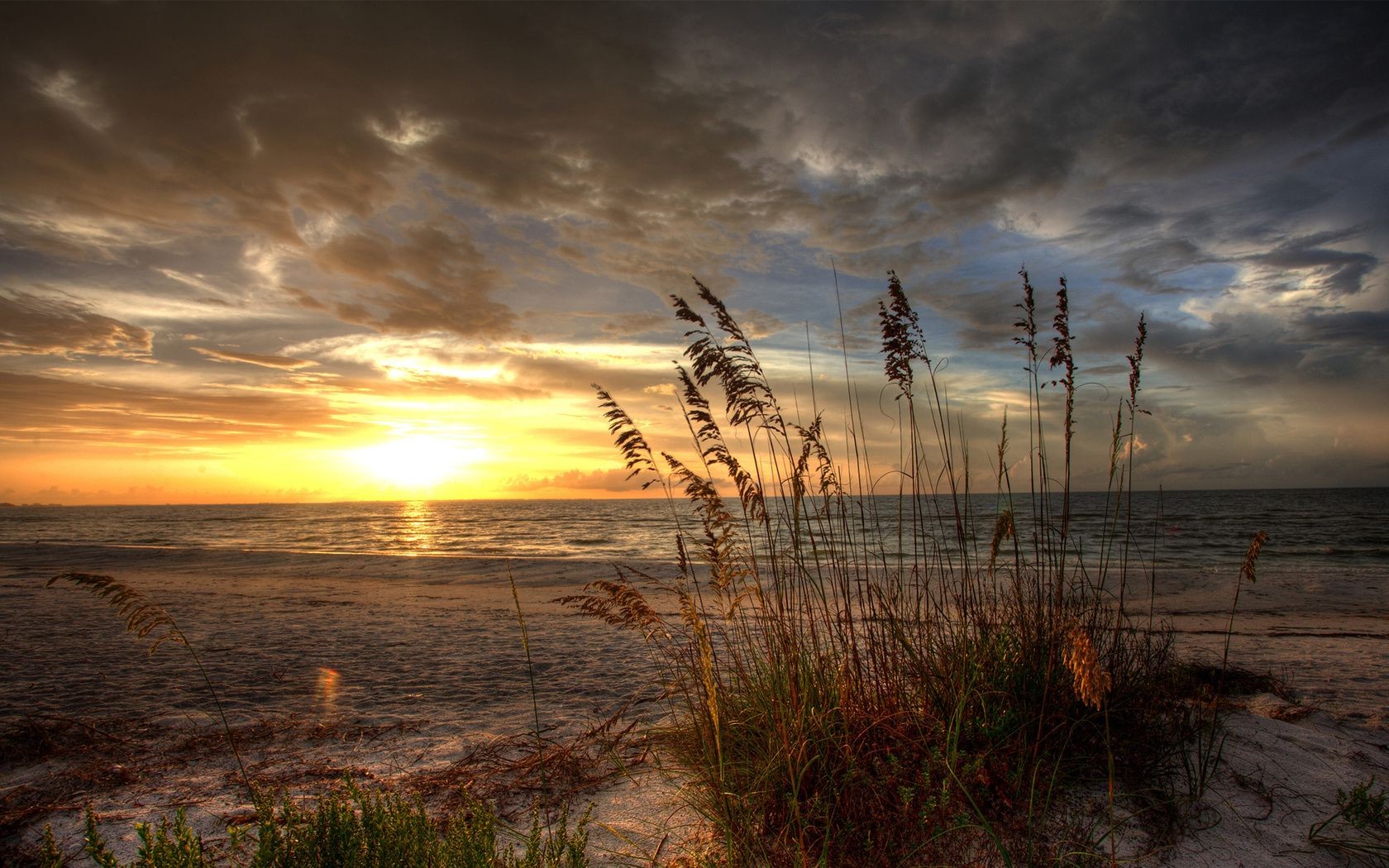 Coucher de soleil au bord de la mer sur la plage sur fond