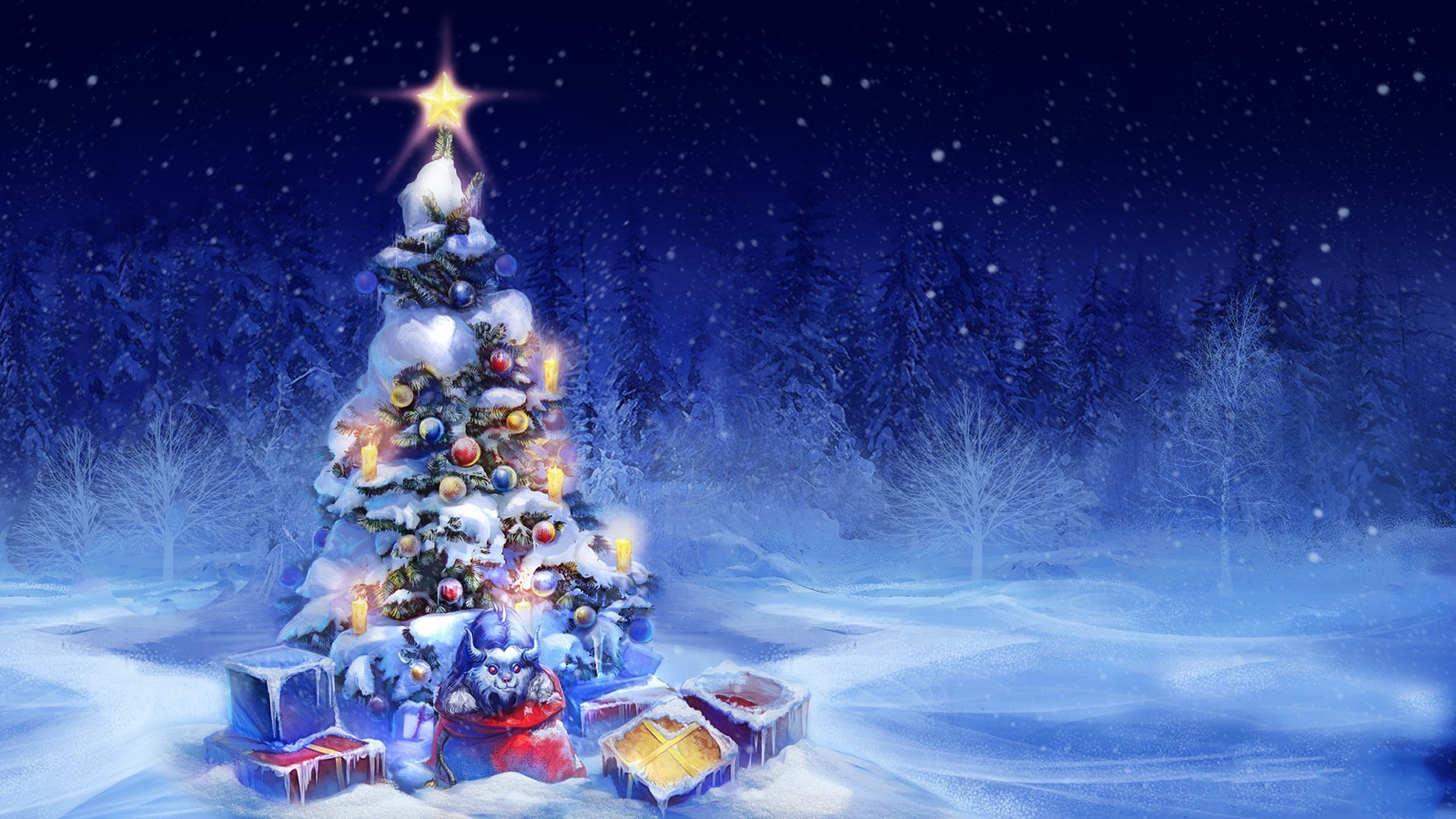 Hiver, arbre de Noël dans la neige et des cadeaux