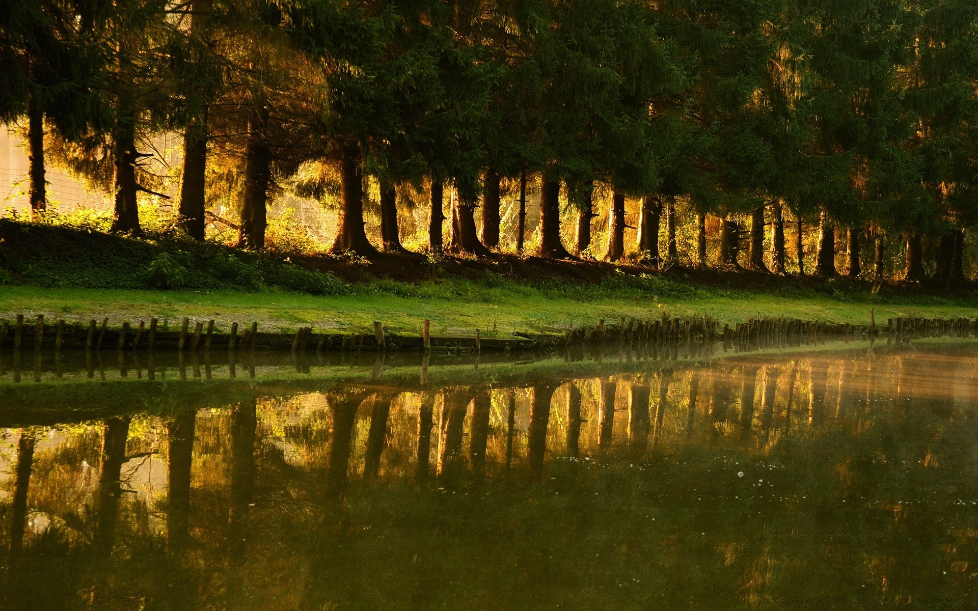 Lac par temps nuageux. Paysage de lac et d'arbres
