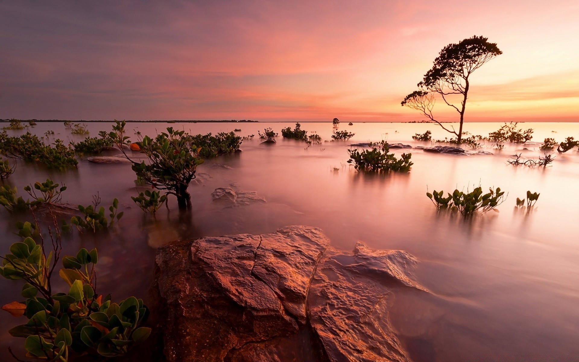 Économiseur d'écran sur le bureau lac au coucher du soleilÉconomiseur d'écran sur le bureau lac au coucher du soleil