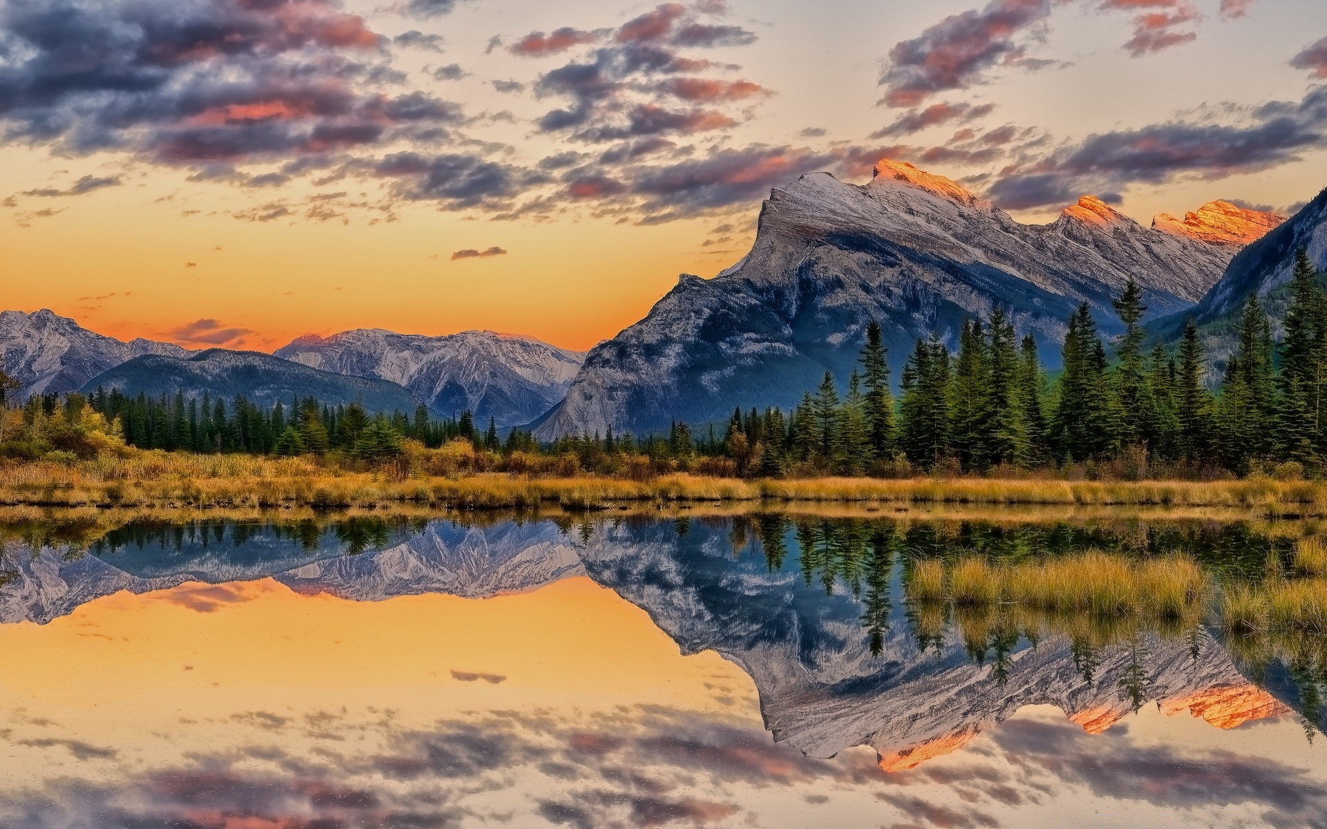 Montagnes se reflétant dans le lac nature dure
