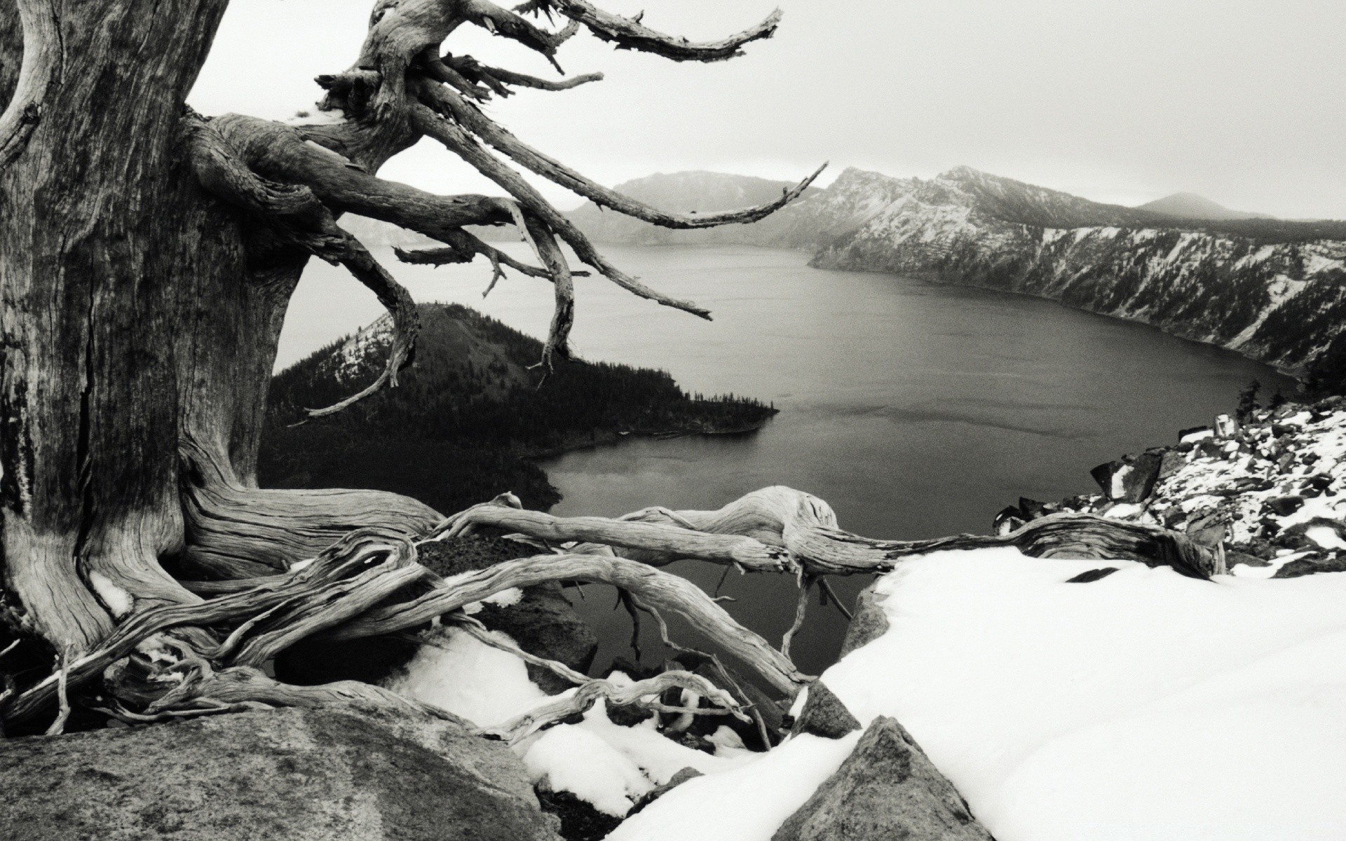 Arbre près du lac en hiver