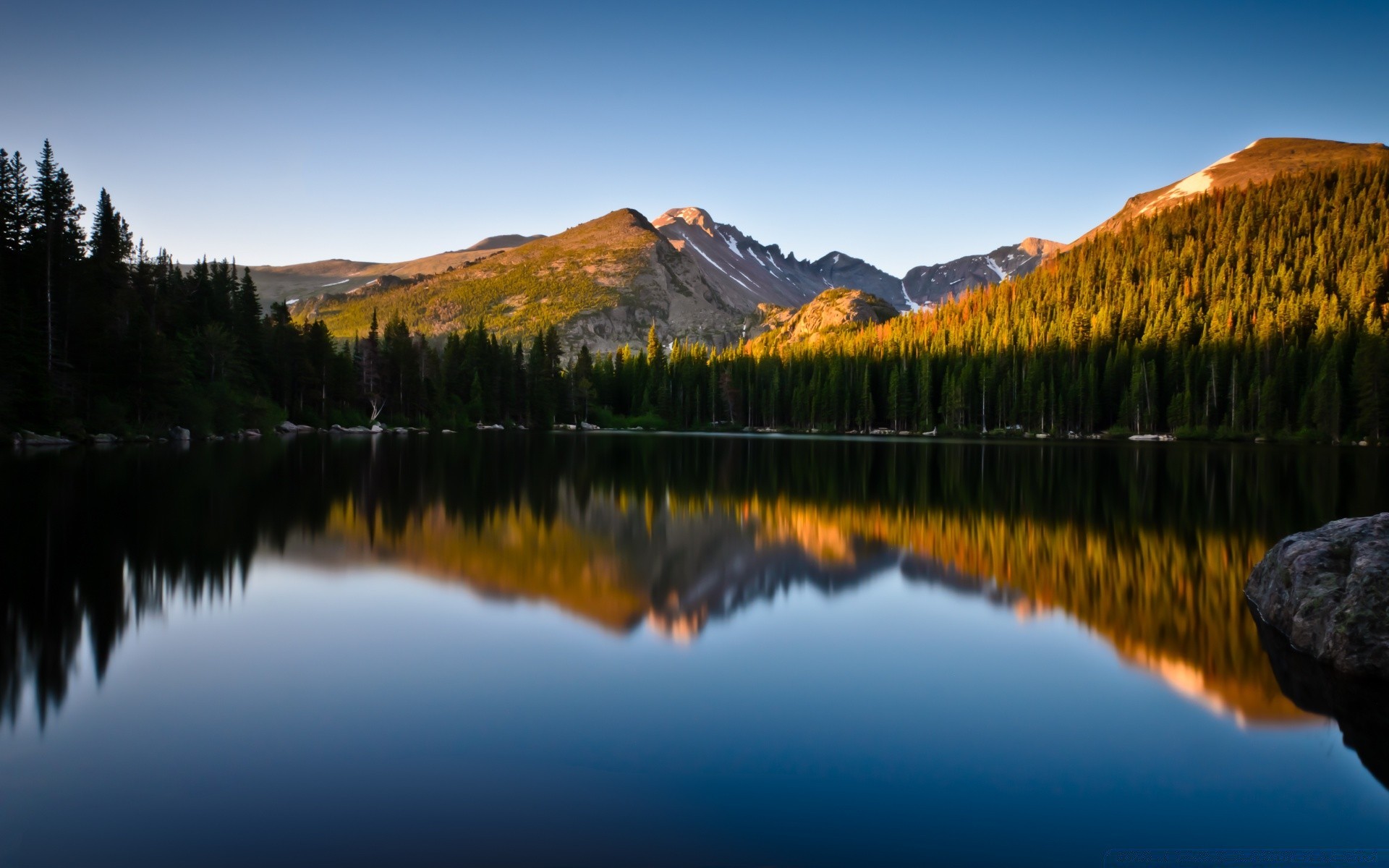 Reflet du ciel coucher de soleil dans l'eau du lacReflet du ciel coucher de soleil dans l'eau du lac