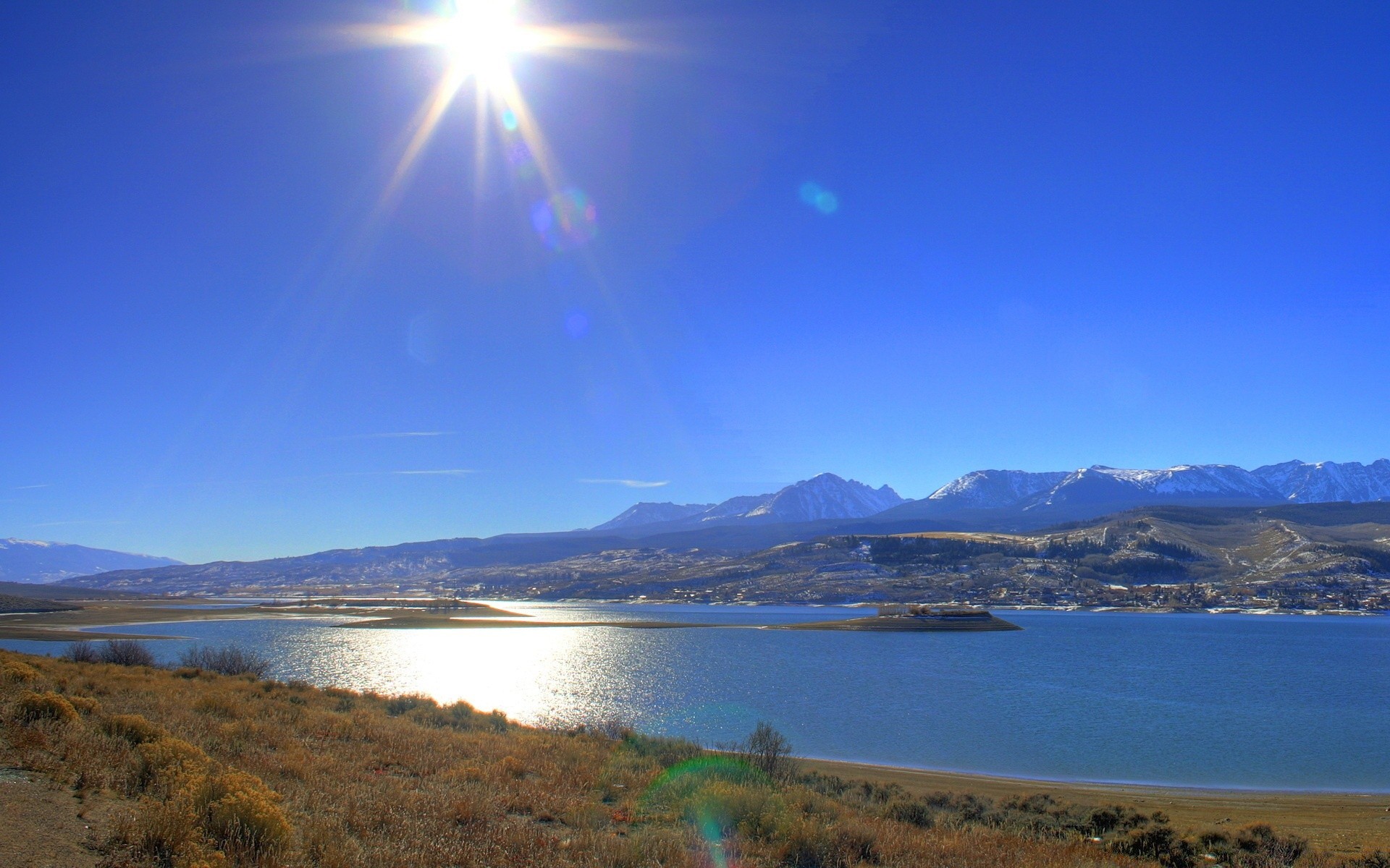 Beau coucher de soleil et le reflet du soleil sur le lacBeau coucher de soleil et le reflet du soleil sur le lac