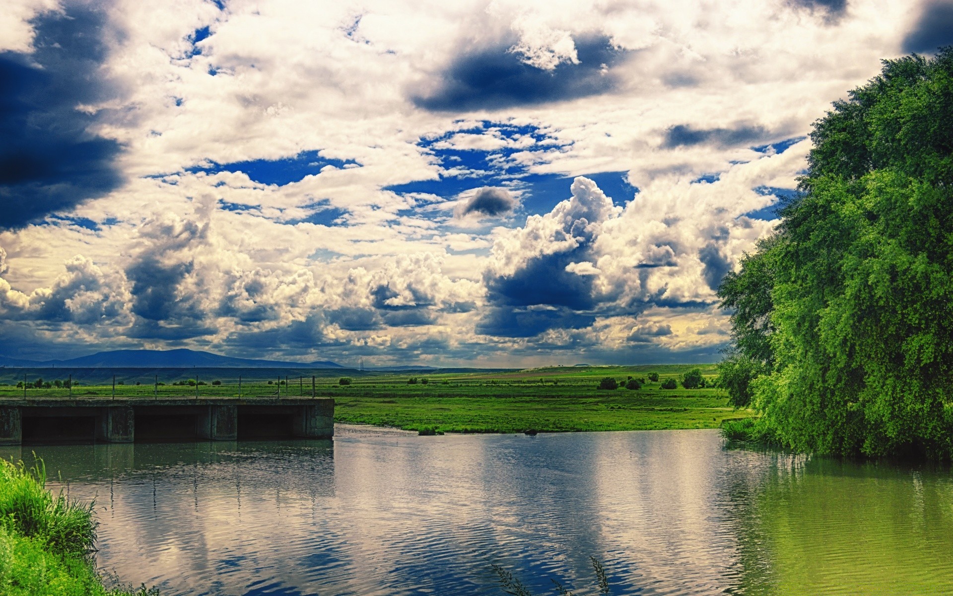 Lac sur fond de beau ciel