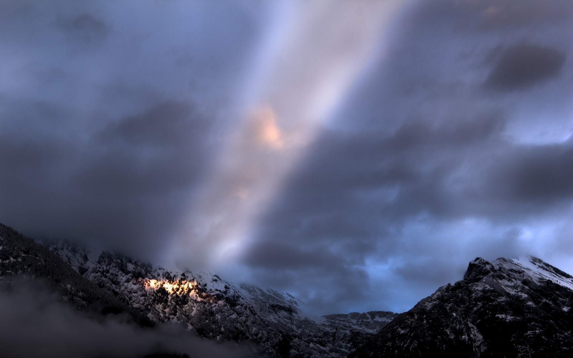 Belles montagnes et le ciel avec des nuages se reflètent dans le lac