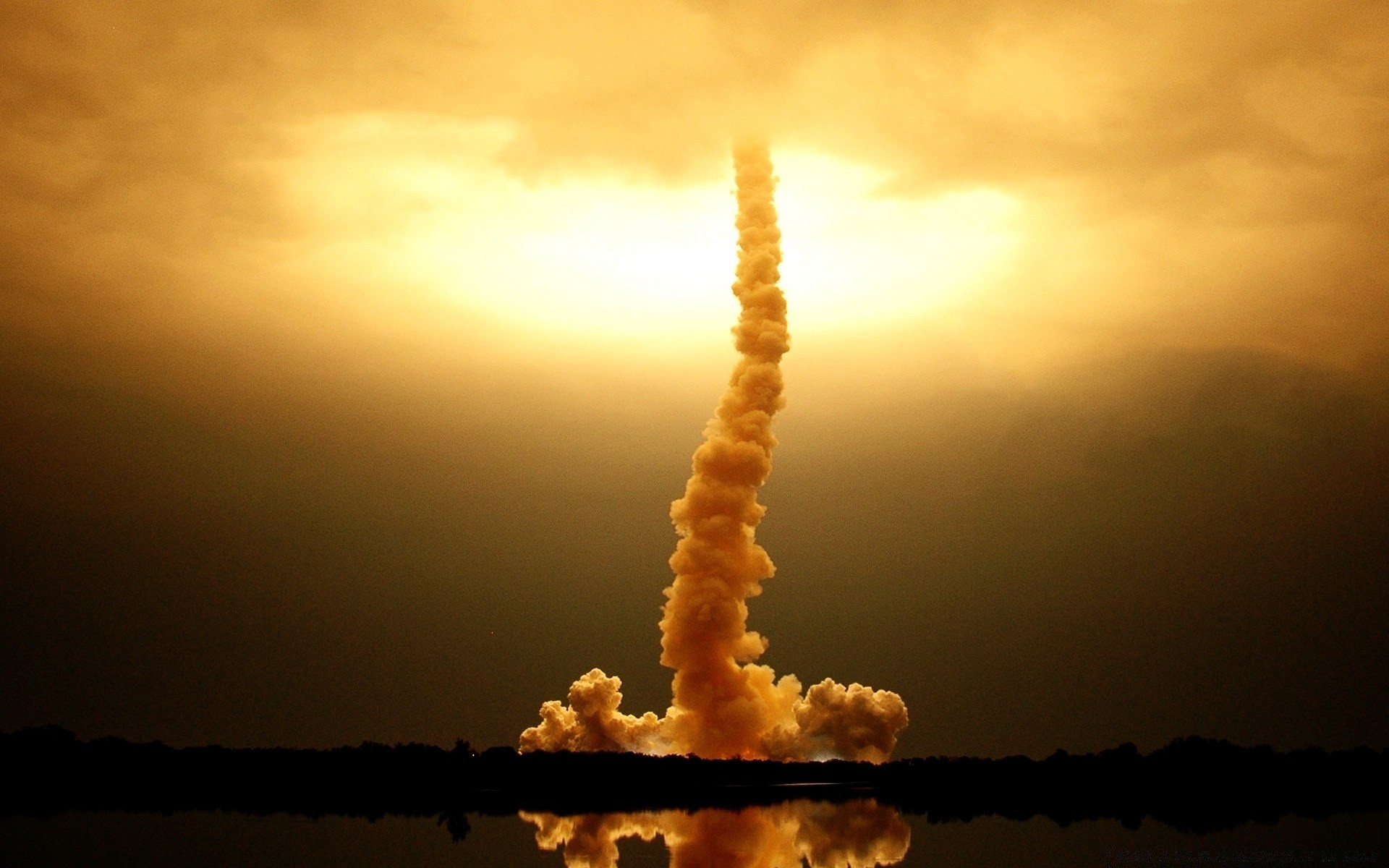Tuyau de fumée dans le ciel. Coucher du soleil