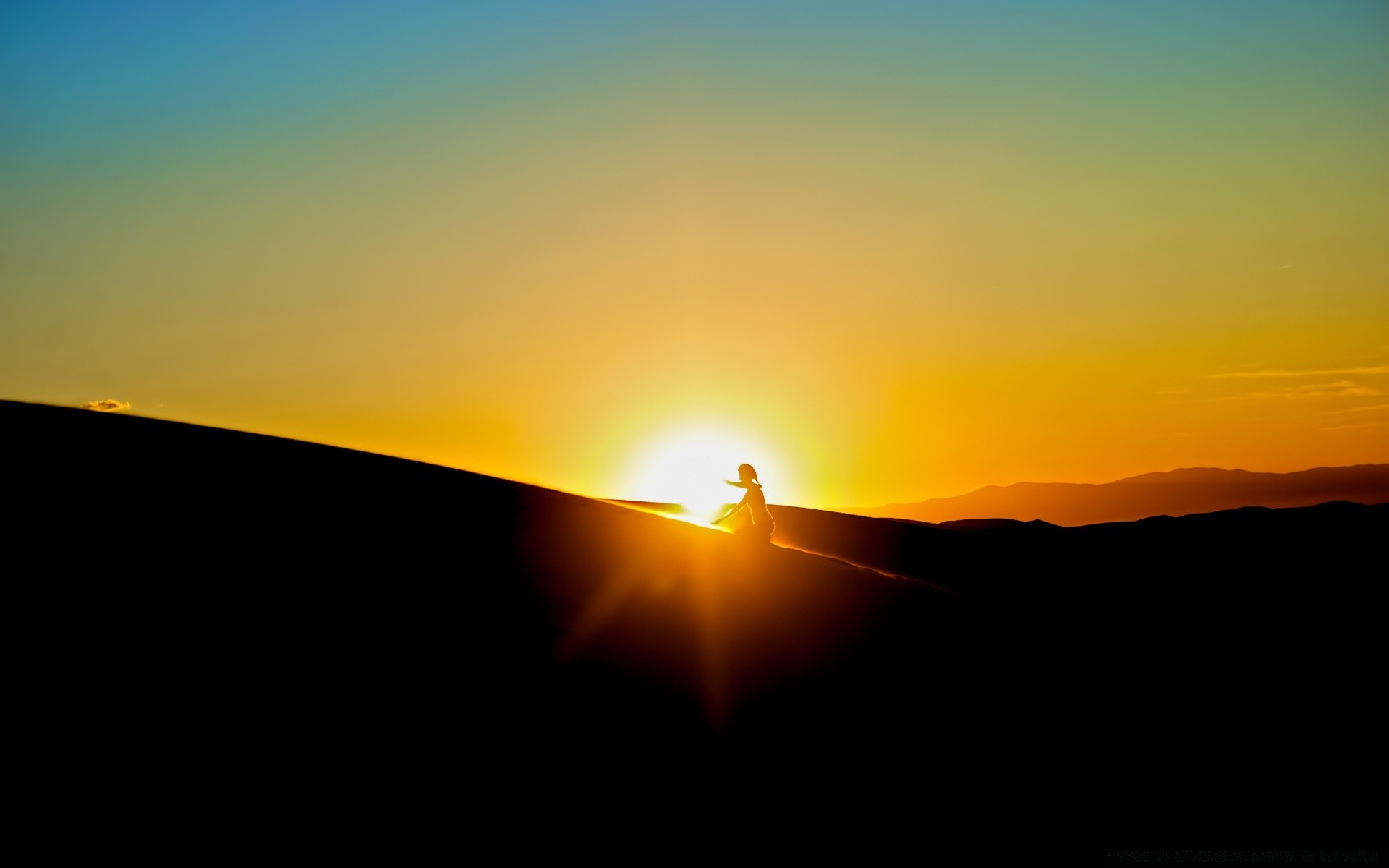 Le coucher de soleil se cache derrière les toits sombres des maisons sur un ciel orange vif
