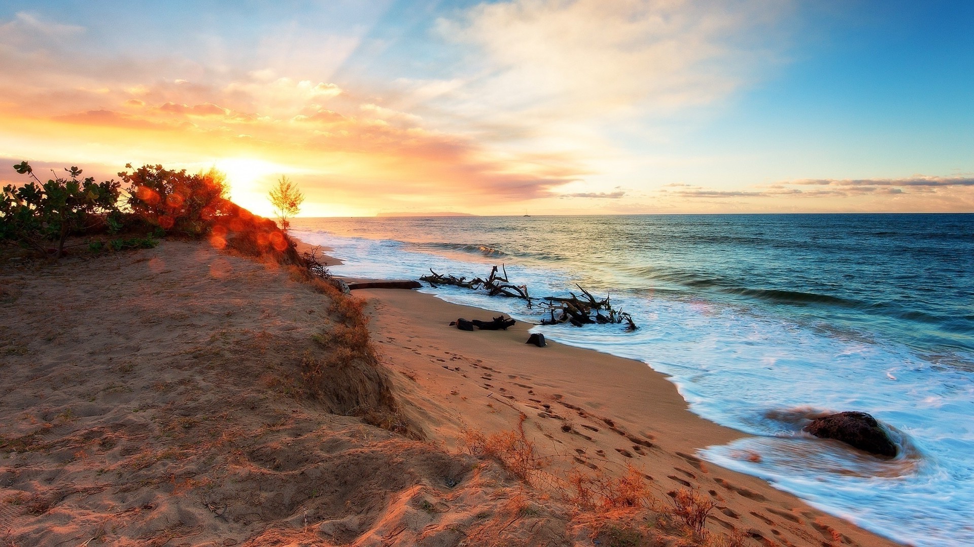 Tomb Raider rencontre le coucher de soleil sur le rivage