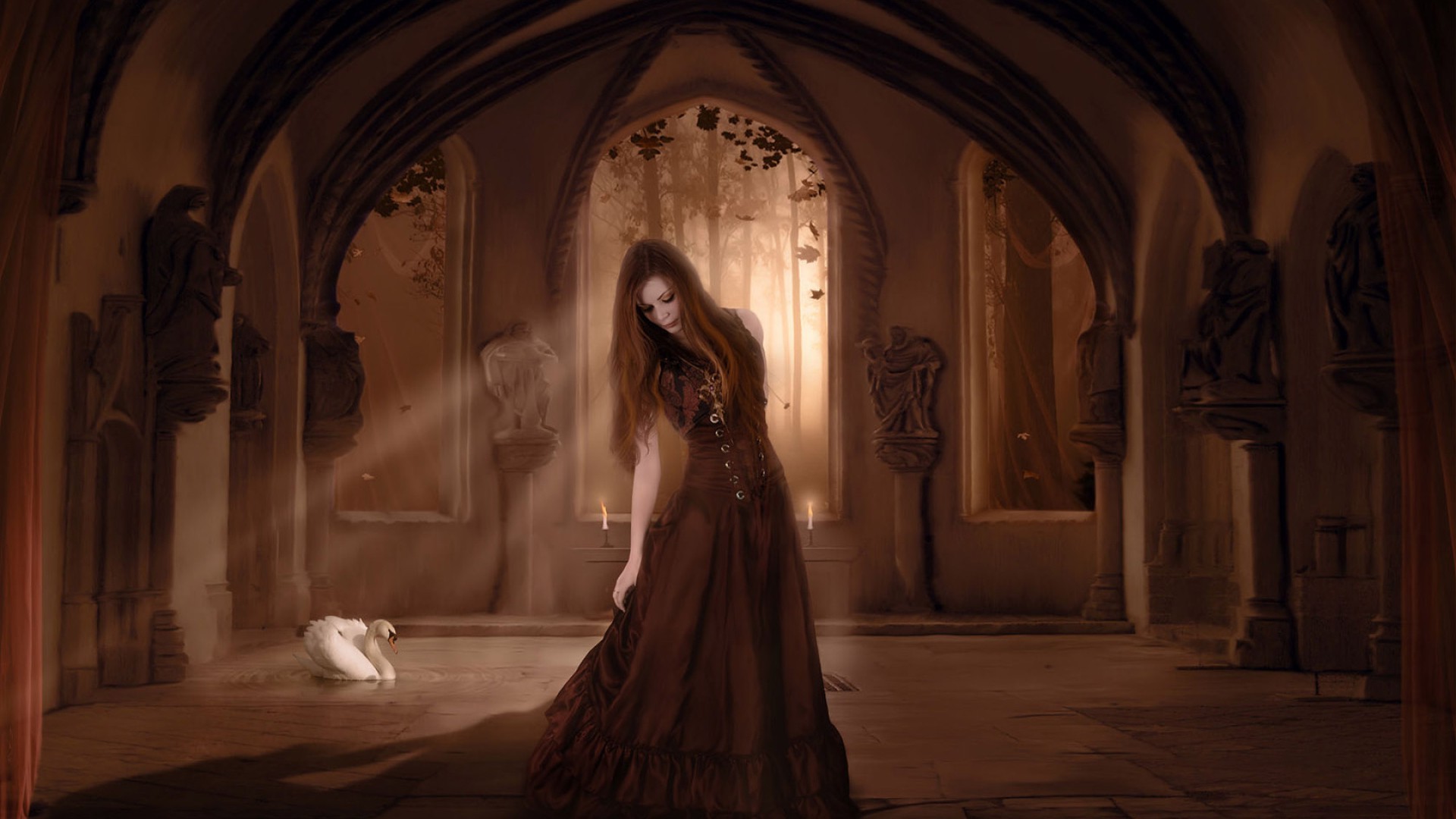 Image de la jeune fille dans l'église dans le style de fantaisie