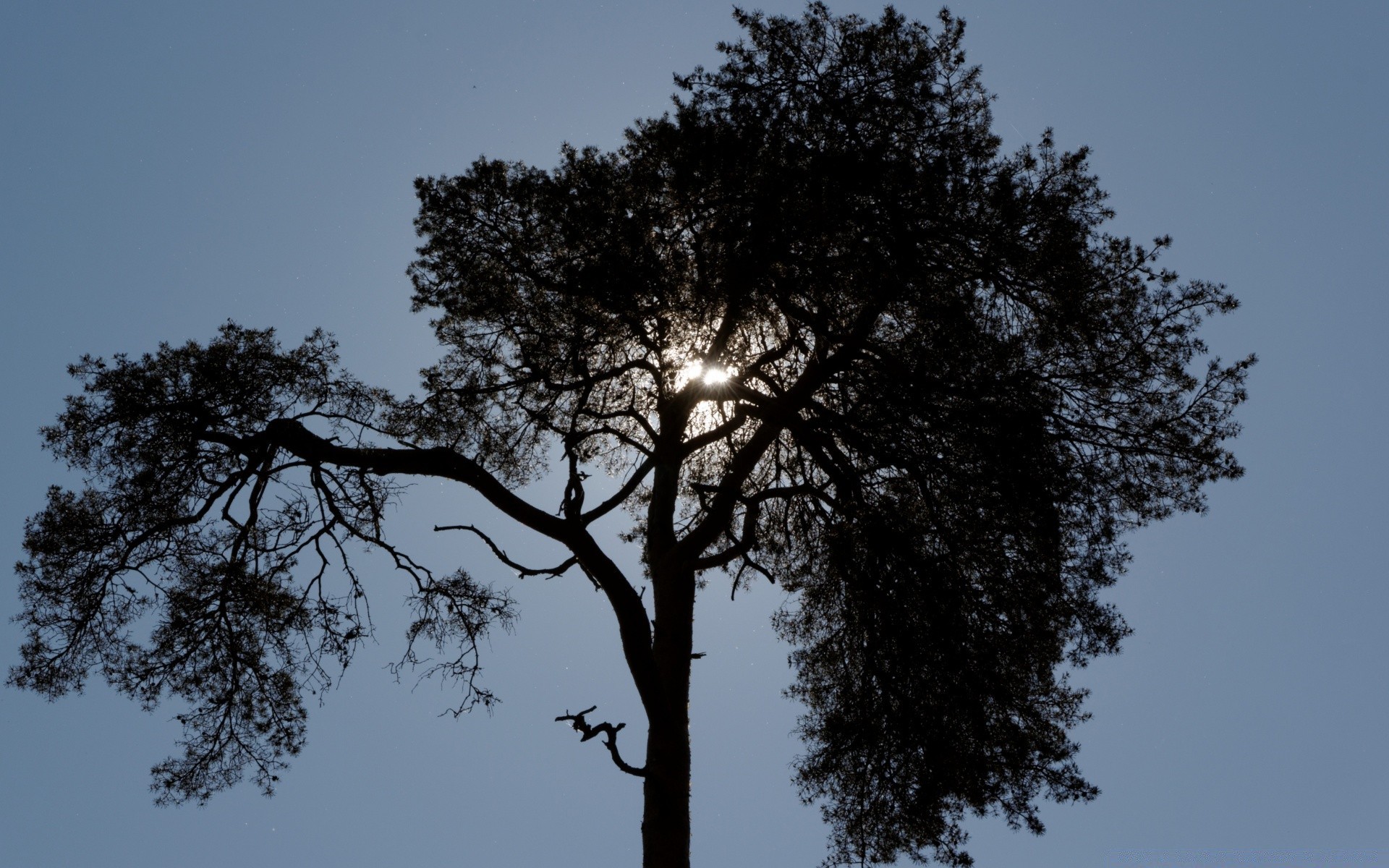Nuages jaunes et le soleil avec un oiseau solitaire sur une branche