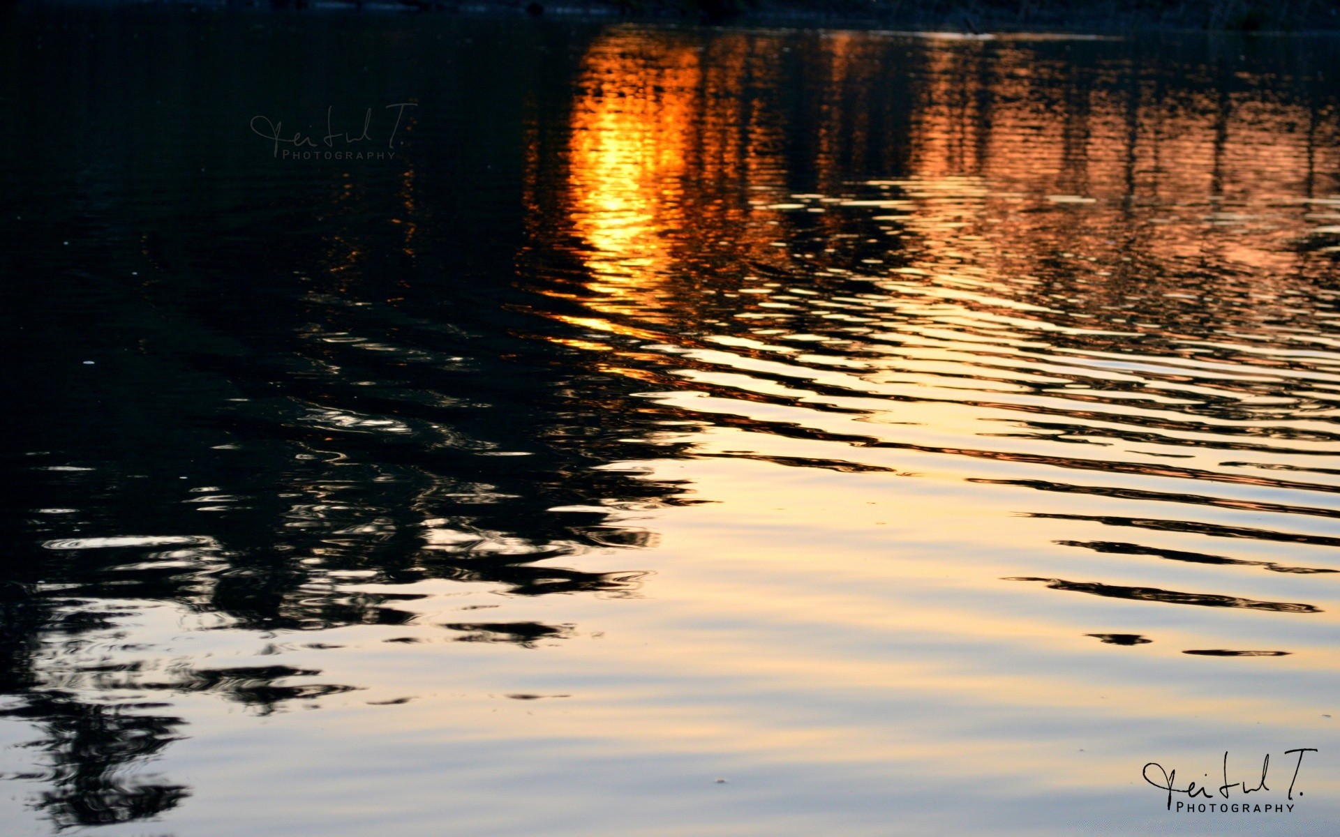 Réflexion des rayons du soleil pendant le coucher du soleil dans le lac
