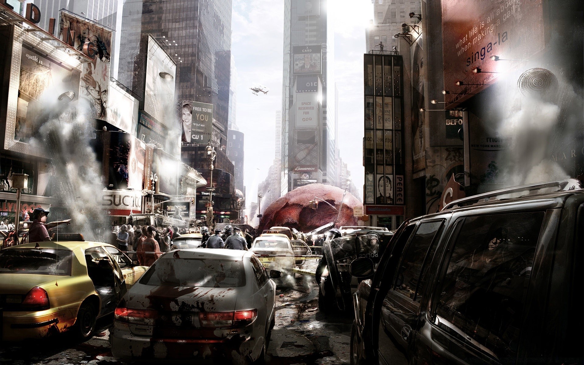 Les voitures brûlent dans la rue de la ville