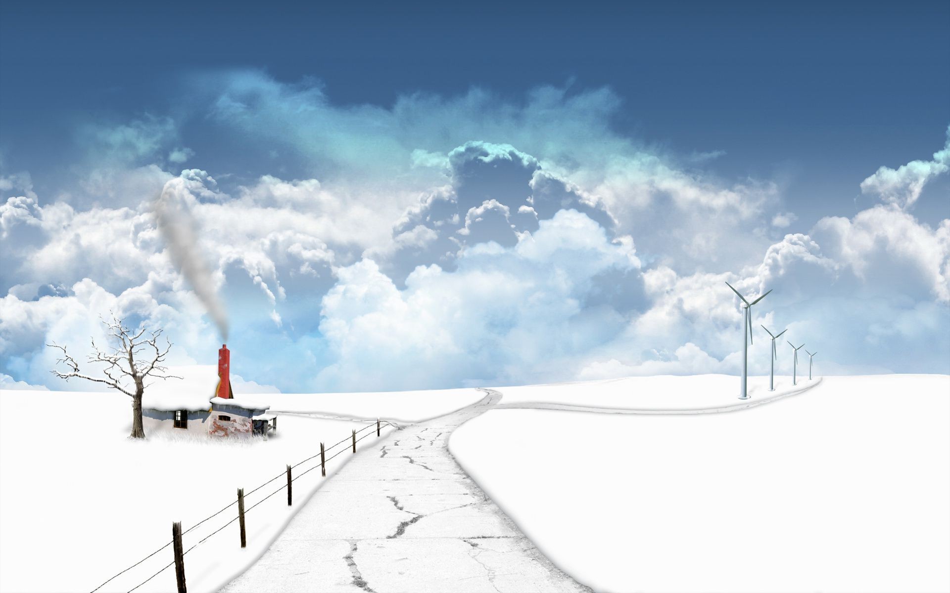 Route d'hiver sans fin sous les nuages en surplomb
