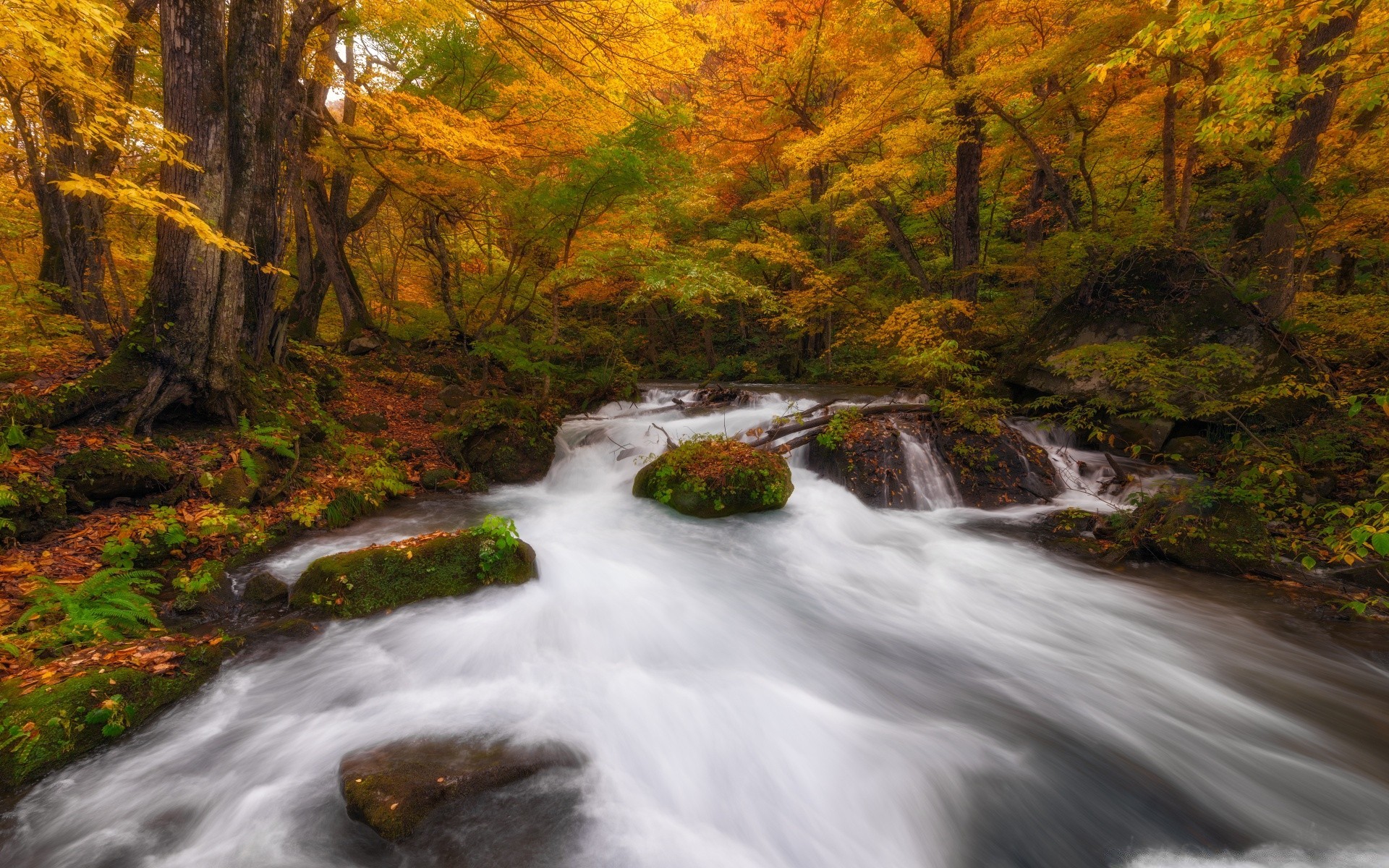 Automne; le paysage extérieur s'étend. l'odeur du bois rend les narines des vagues acidulées; la cascade coule de longs jets... automne