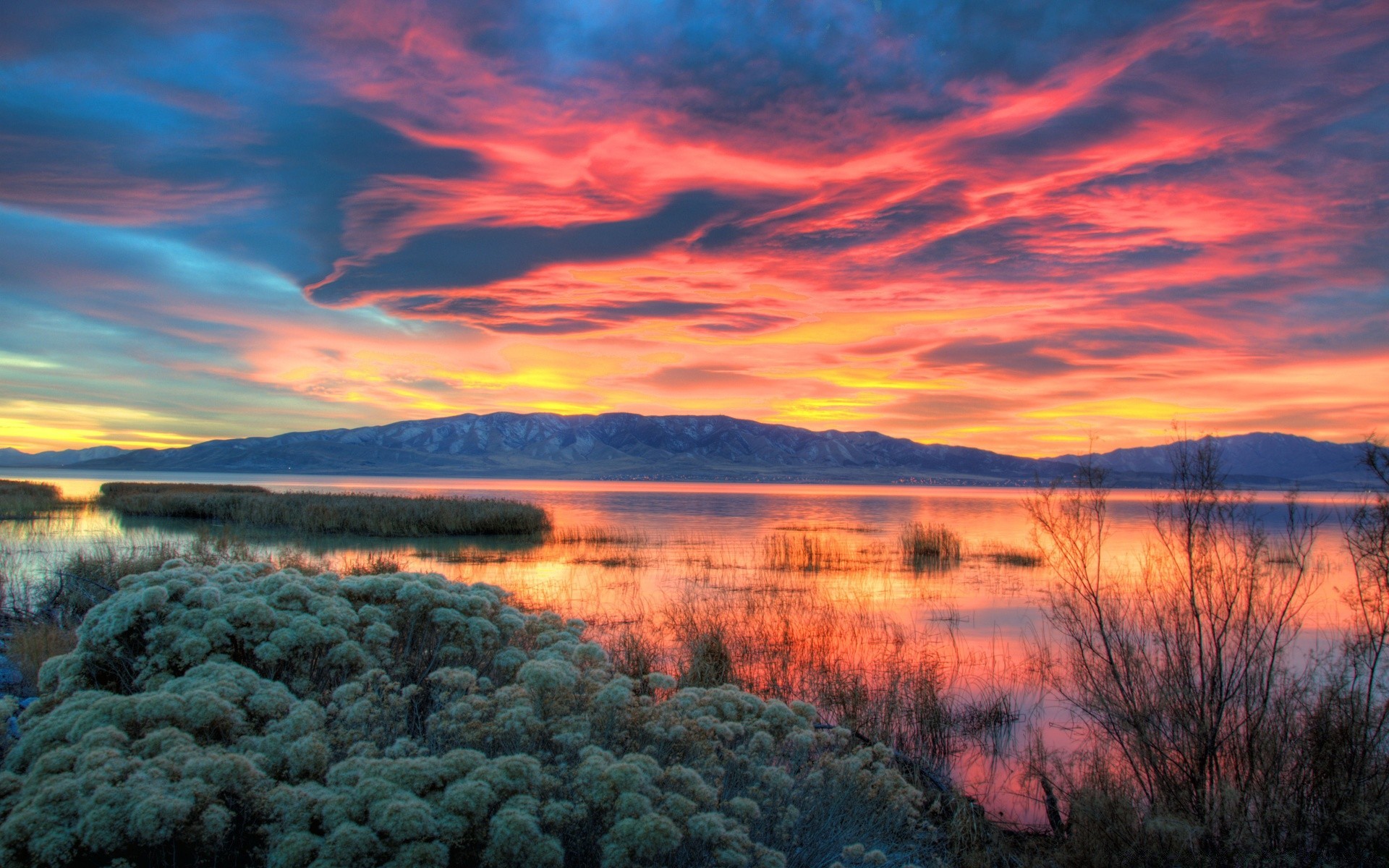 Paysage vue sur le lac et les montagnes de l'Amérique