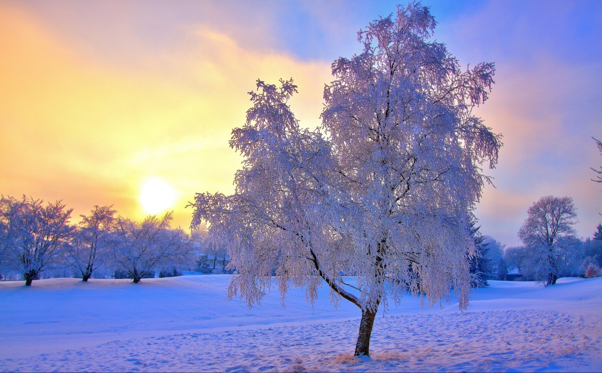 Paysage d'hiver, au milieu de l'eau, sur les côtés des arbres dans la neige