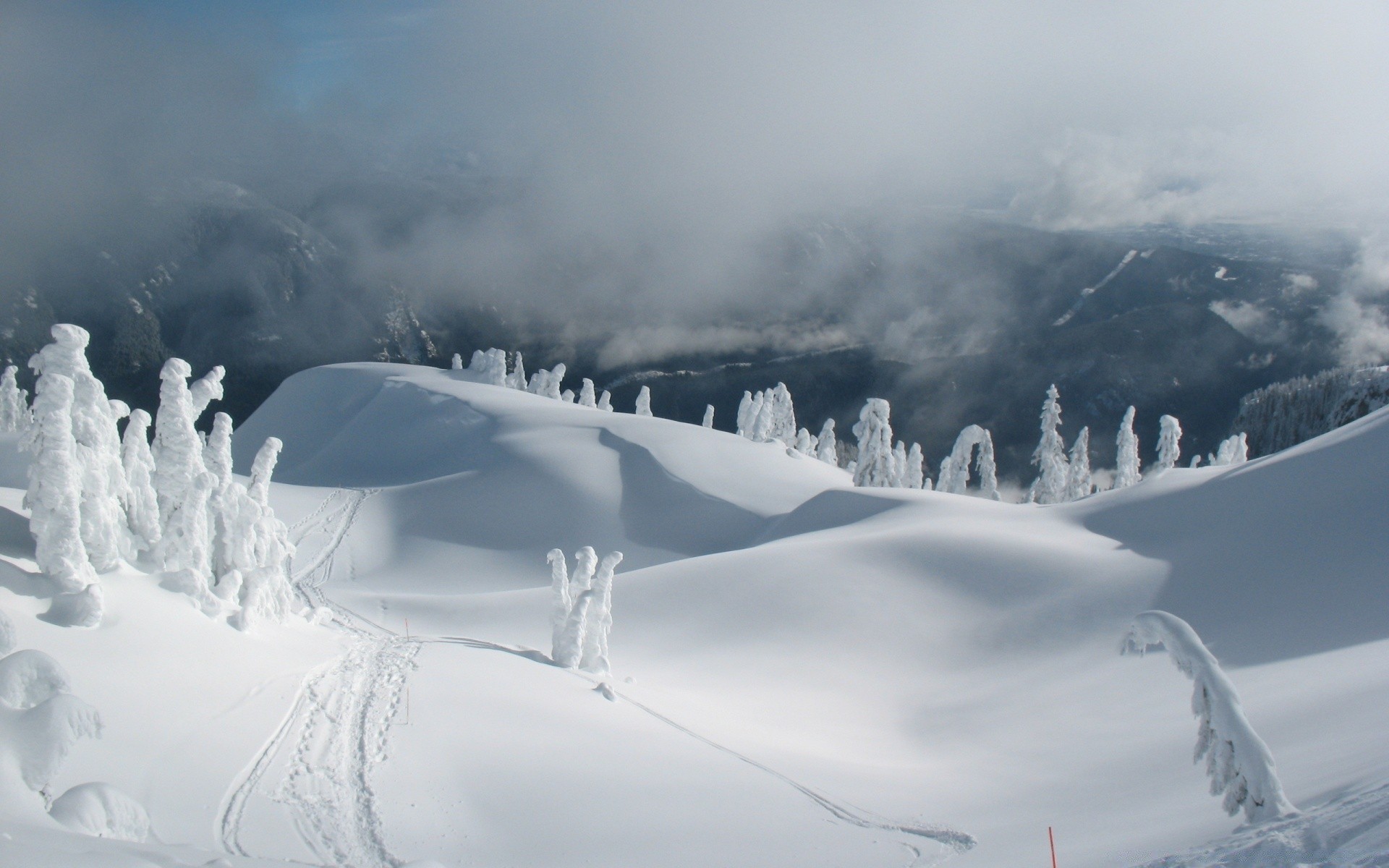 Dans le champ d'hiver et les montagnes, la neige brille au soleil
