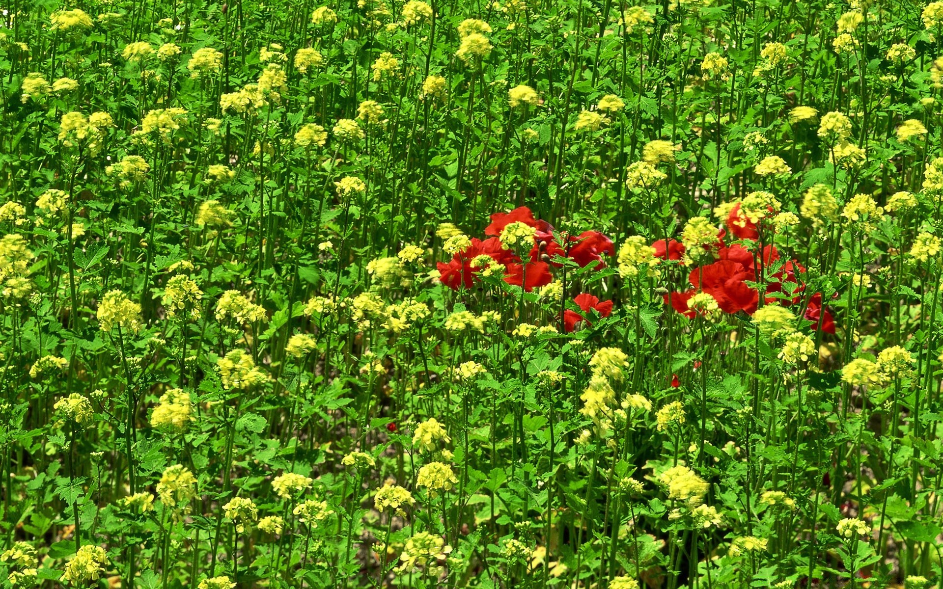 Buisson de fleurs rouges sur un champ vert