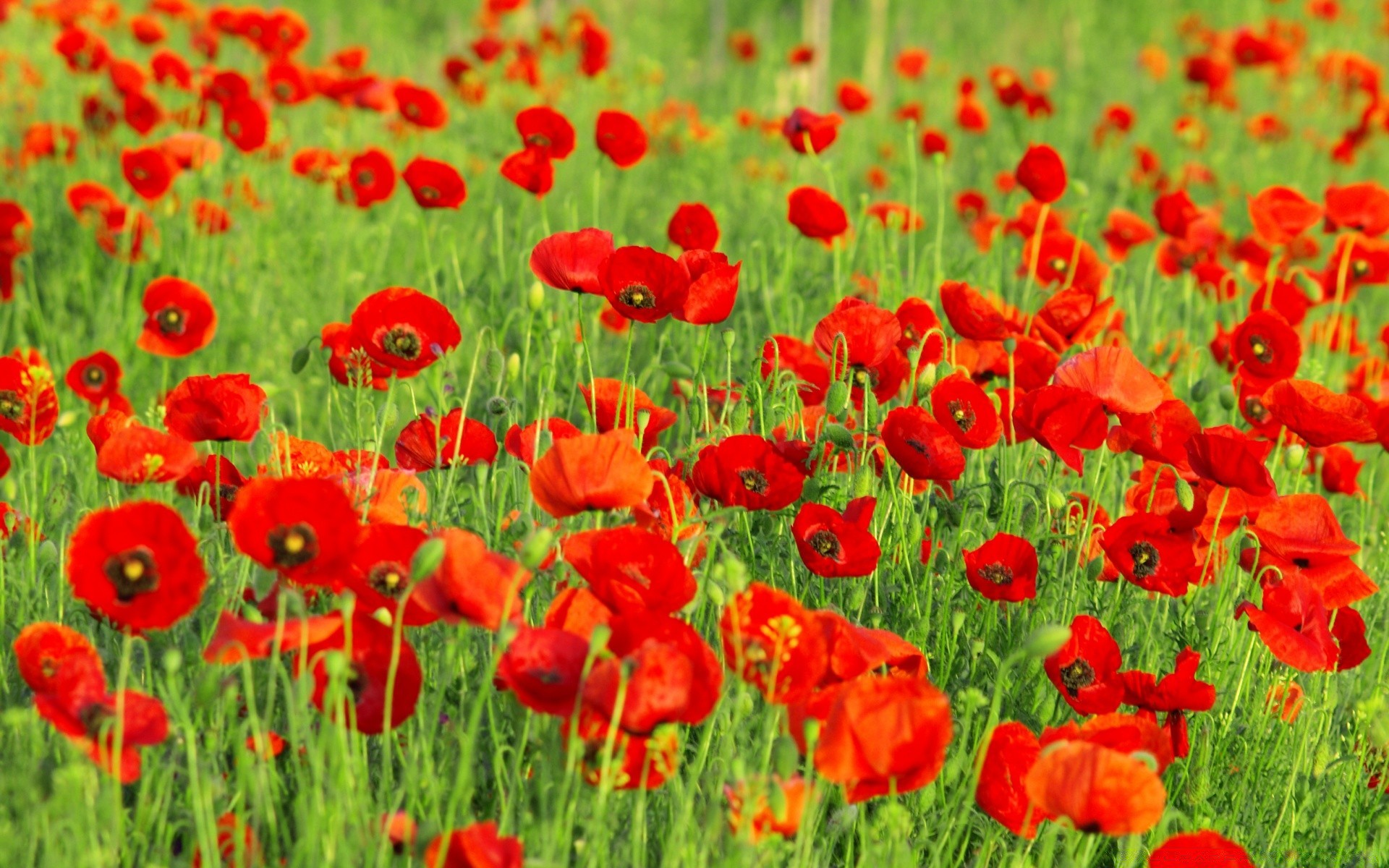 Immense champ de tulipes rouges