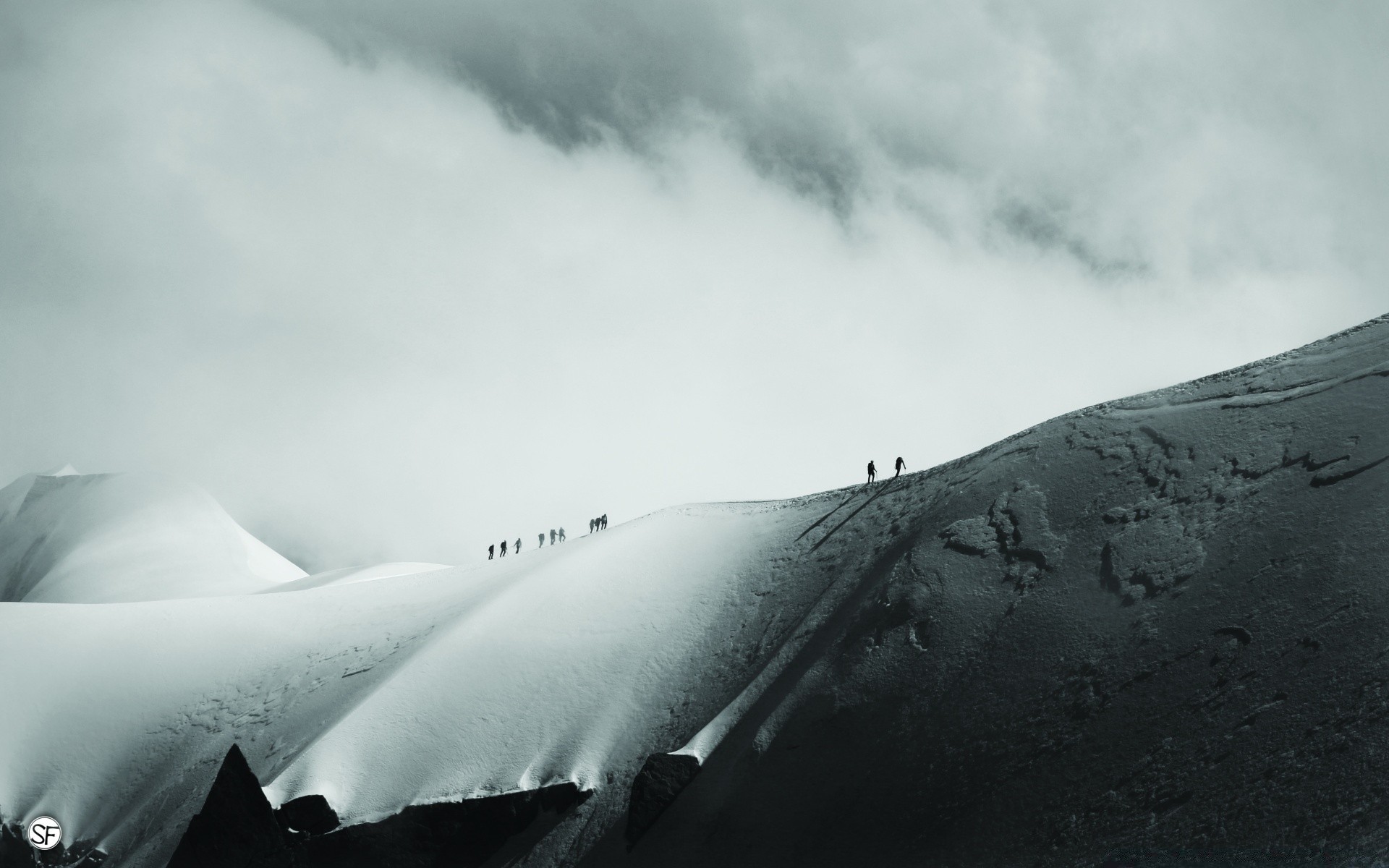 Paysage de montagne dans le brouillard avec des couleurs vivesPaysage de montagne dans le brouillard avec des couleurs vives