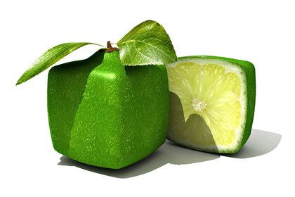 Feuilles de menthe et citron vert sur un mouchoir vert