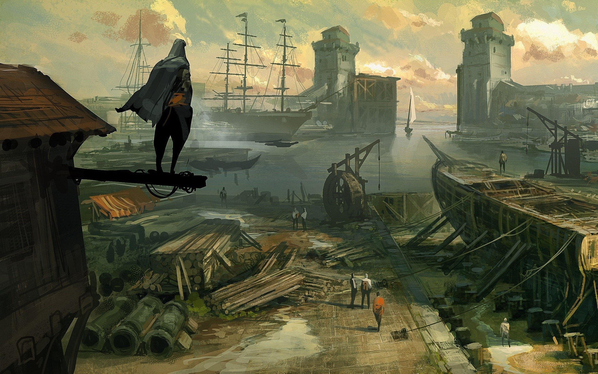 Assassin regarde d'une hauteur au loin