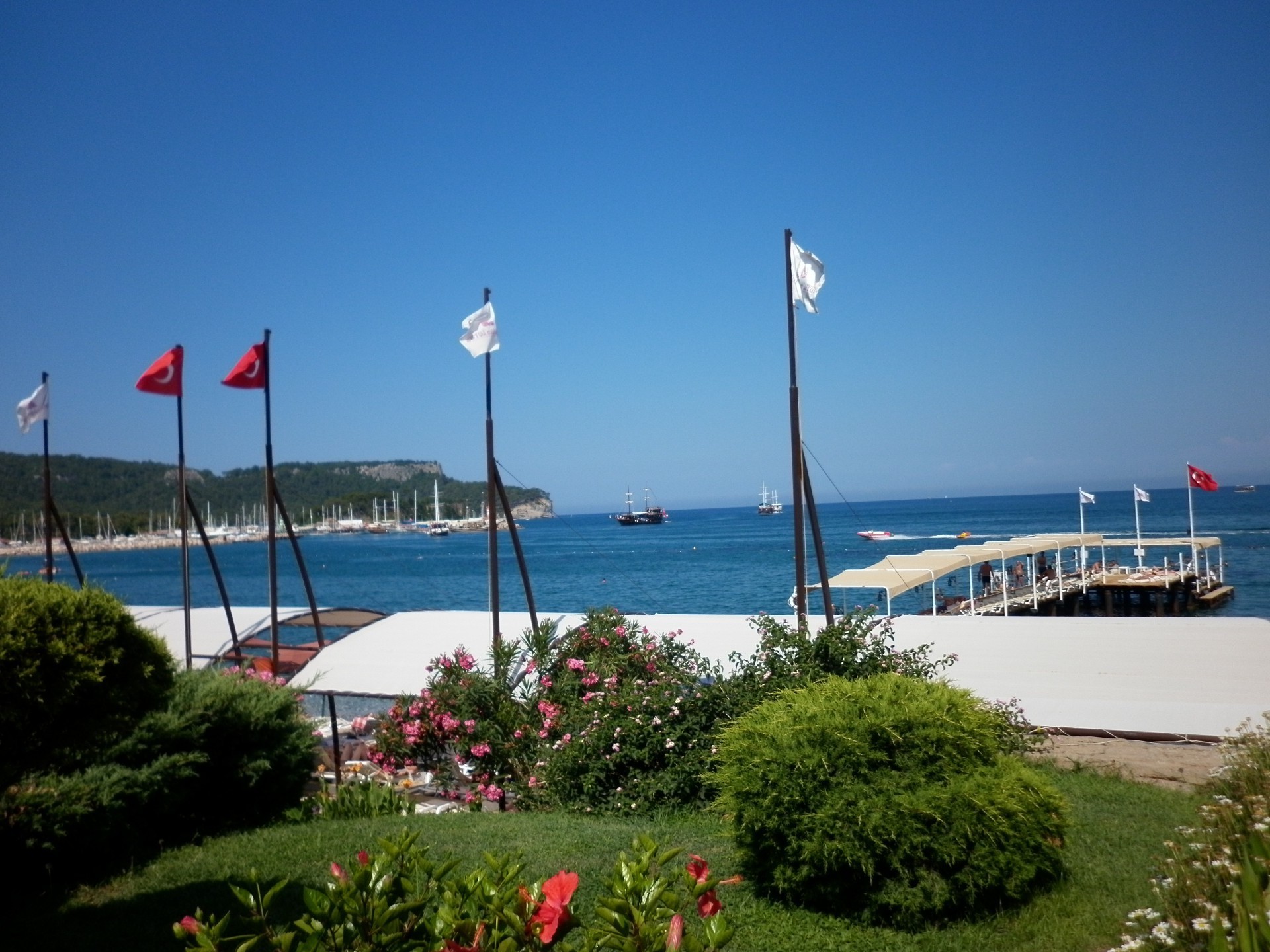 Fille en maillot de bain rose marche sur l'eau sous la jetée